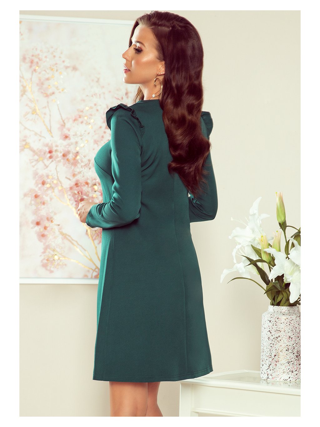 (Veľ. 2XL) Zelené šaty s volánikmi na ramenách VANESA