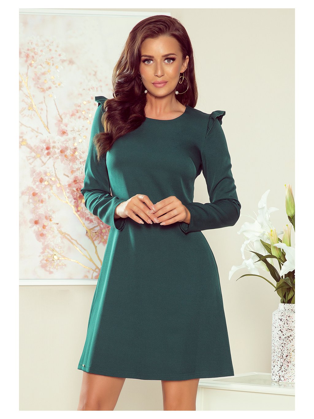 (Veľ. L) Zelené šaty s volánikmi na ramenách VANESA