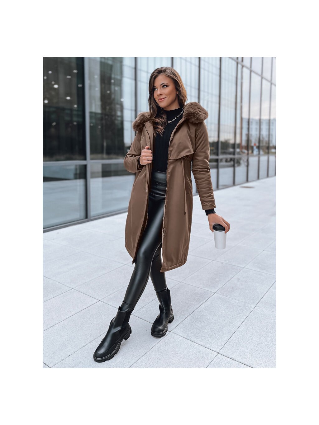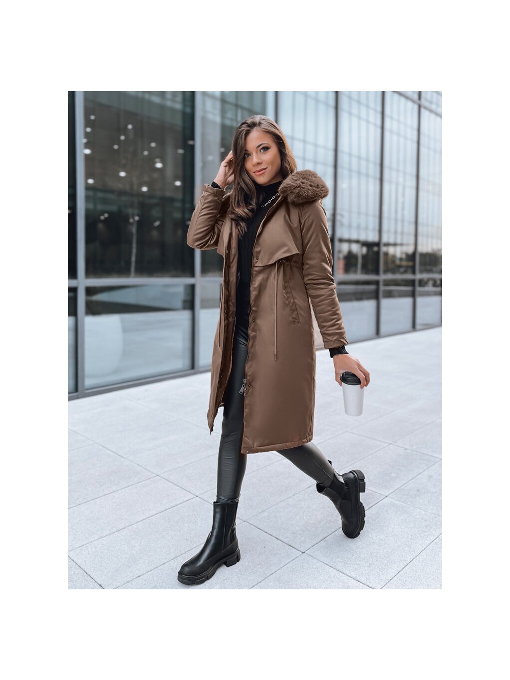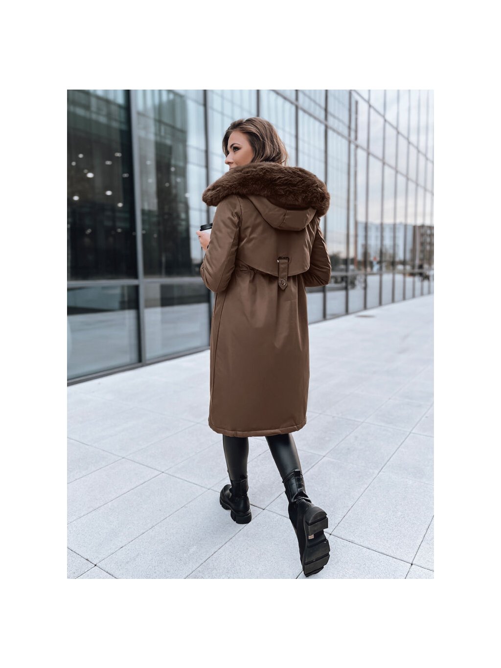 (Veľ. M) Tmavohnedá dlhá parka LUSTER