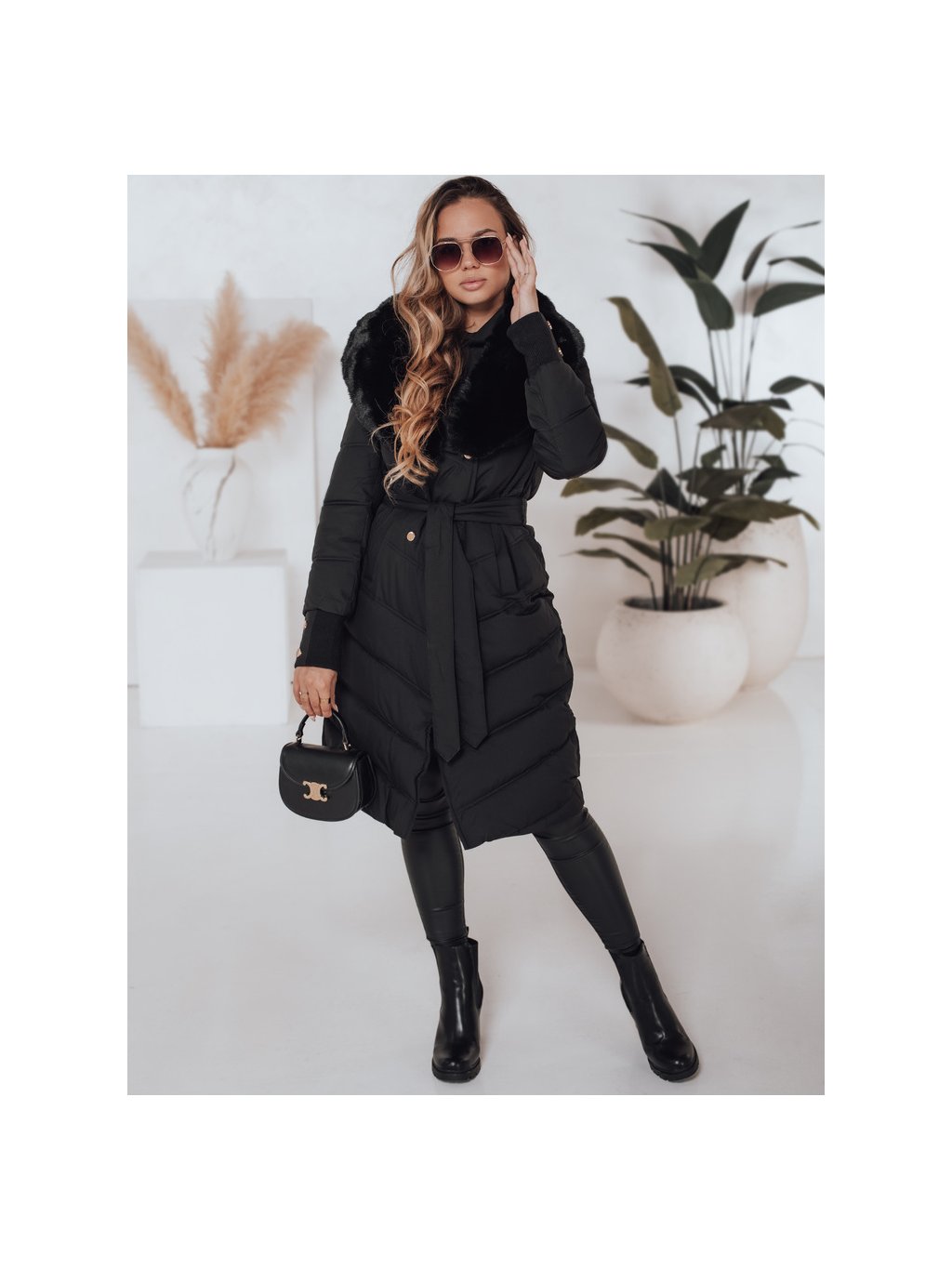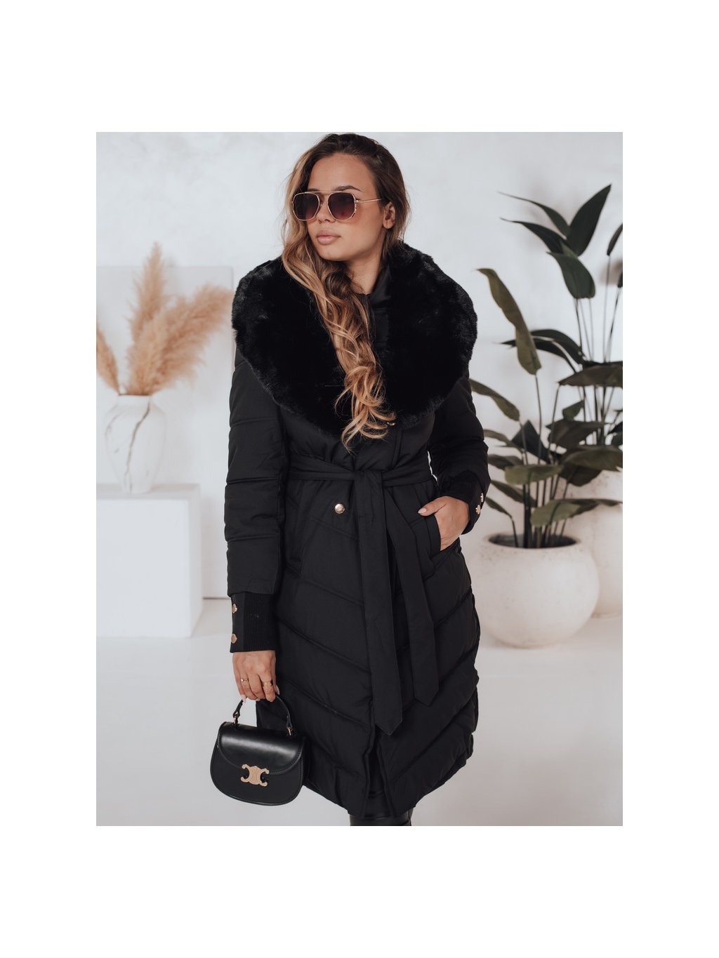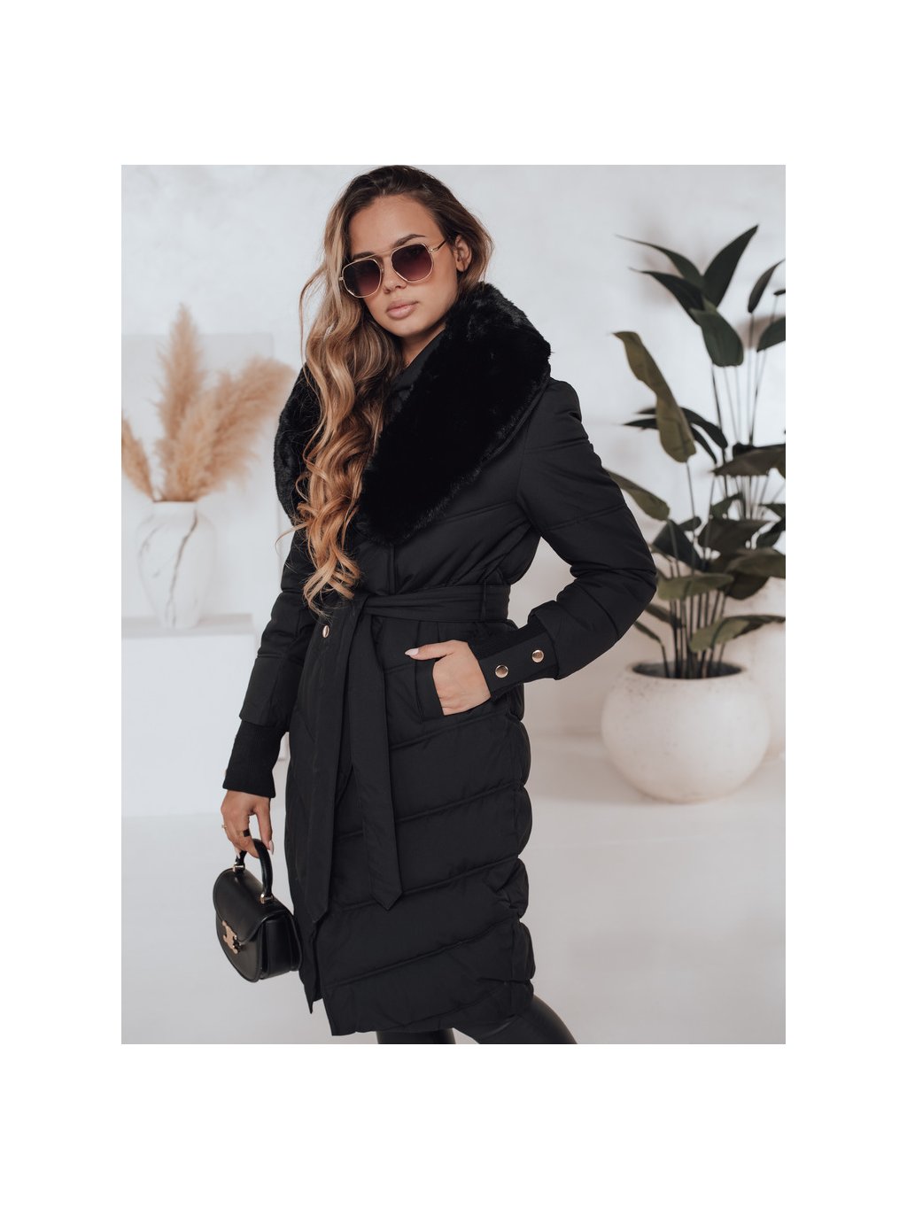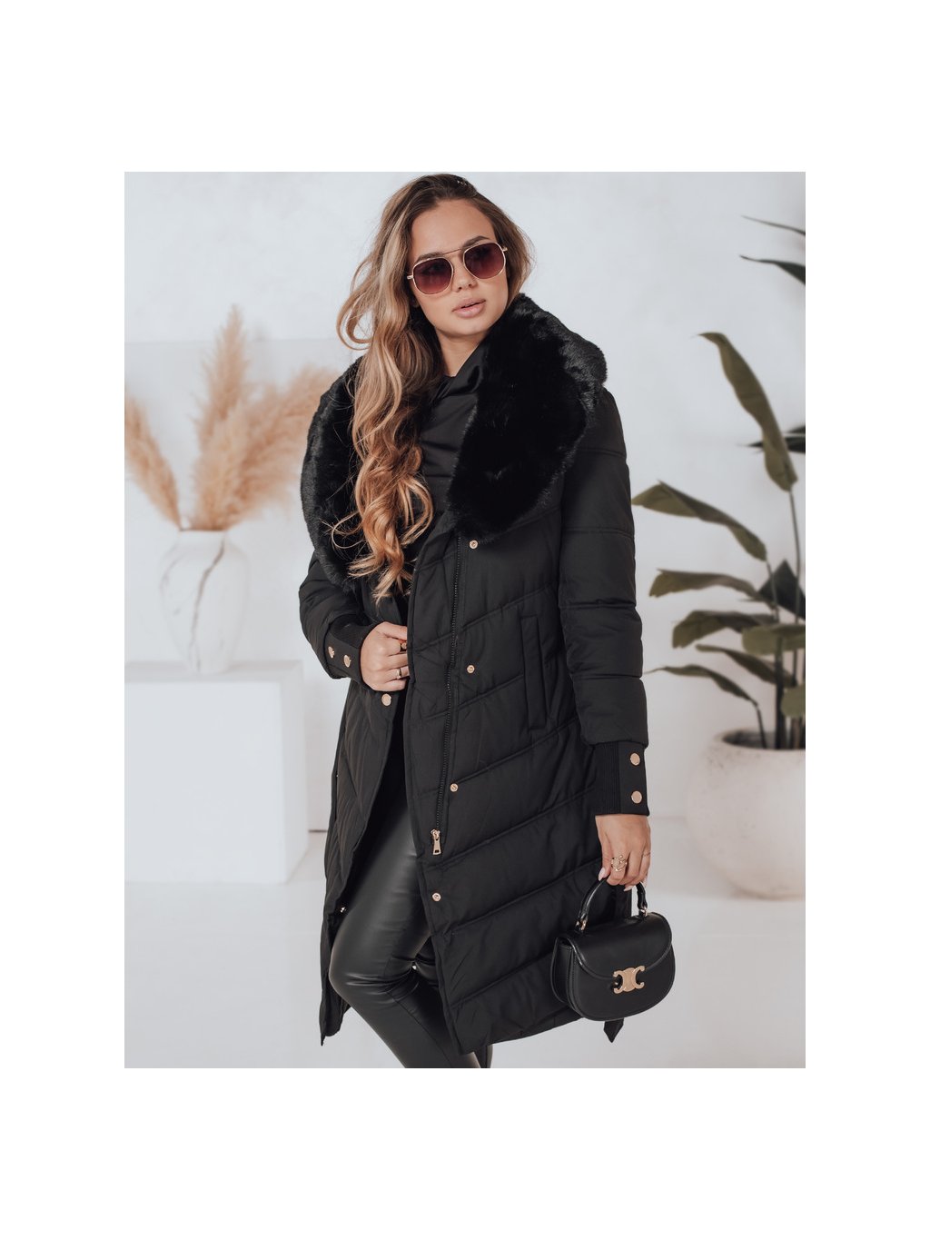(Veľ. S) Čierna dámska prešívaná zimná bunda s kožúškom