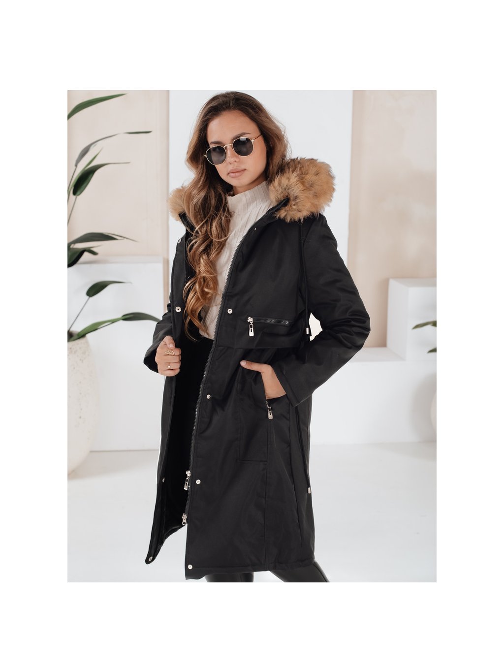 (Veľ. S) Dámska čierna zimná parka s kožušinou