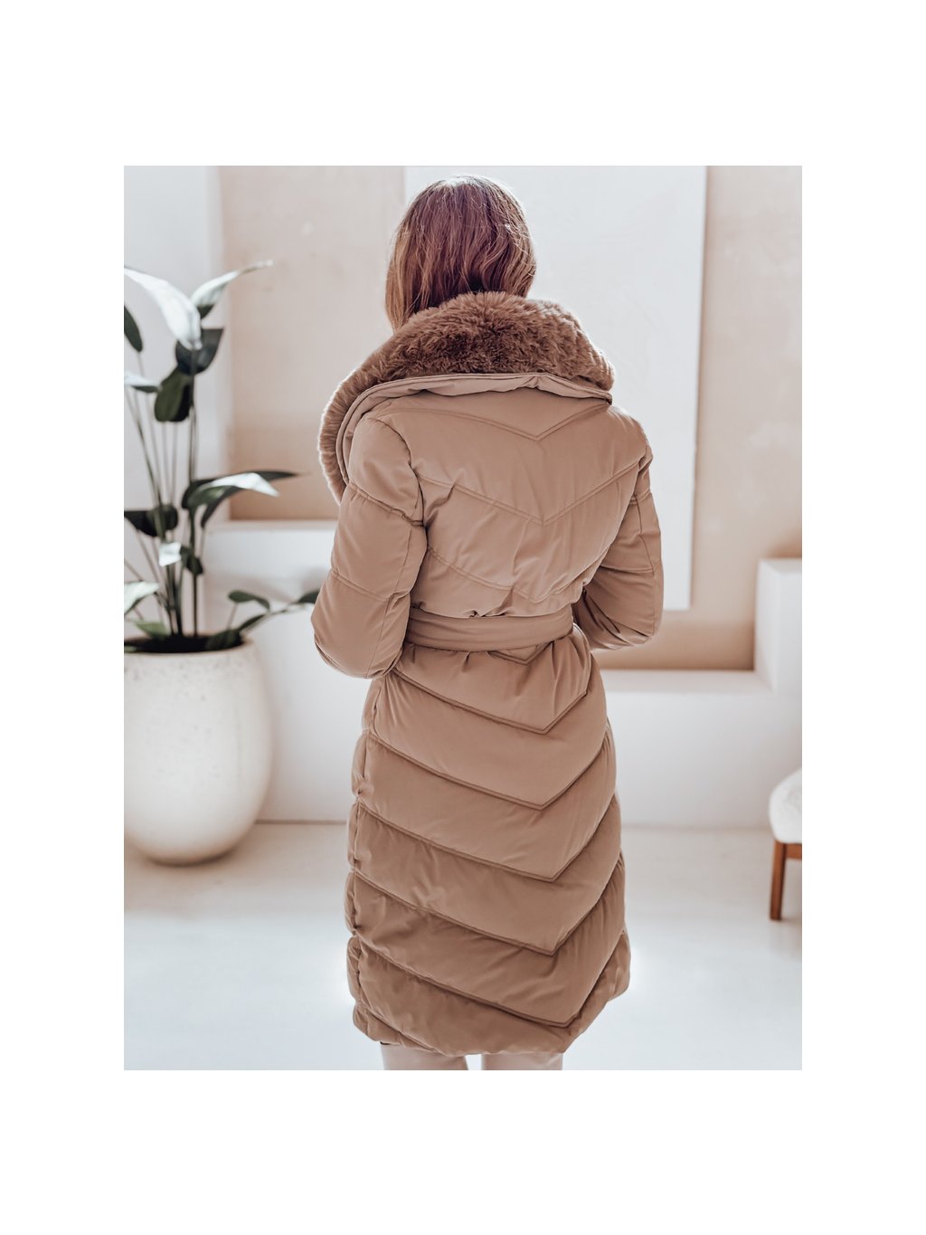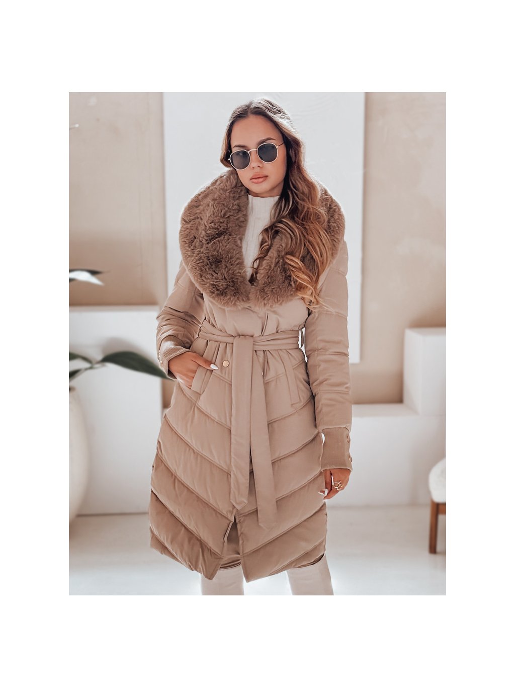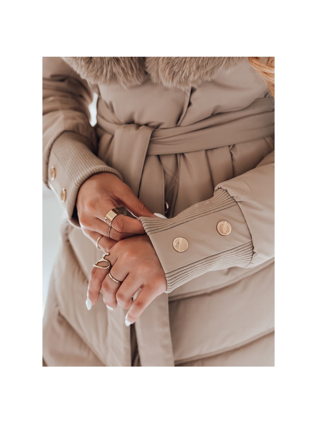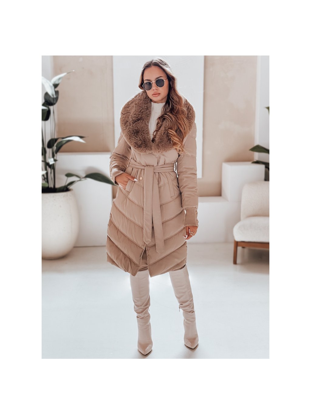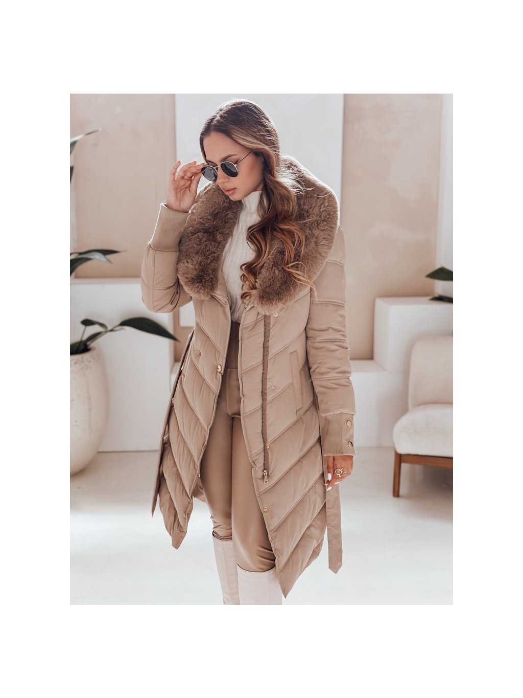 (Veľ. S) Svetlobéžová dámska prešívaná zimná bunda s kožúškom