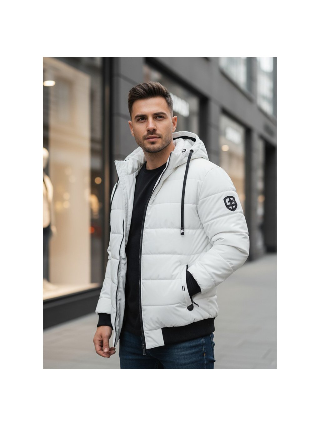 (Veľ. XL) Biela pánska zimná bunda s kapucňou a prešívaním