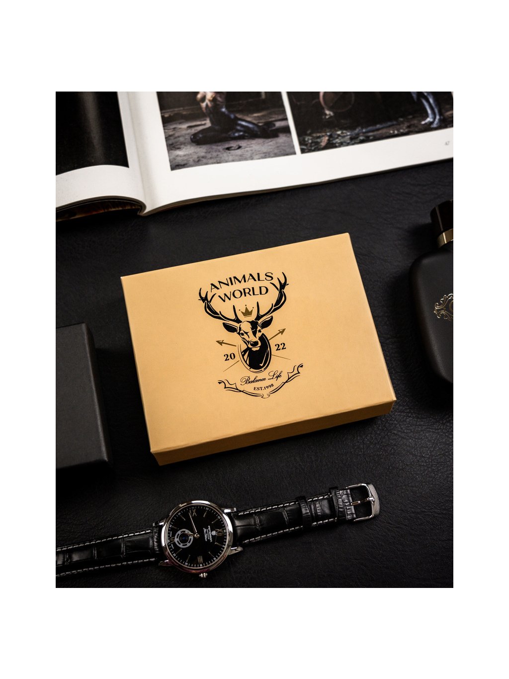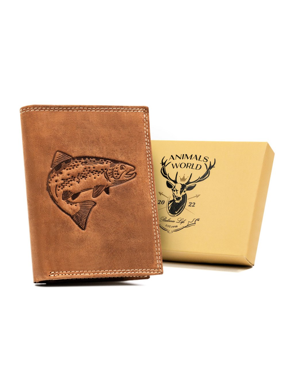 Always Wild Hnedá kožená peňaženka s razbou ryby A144