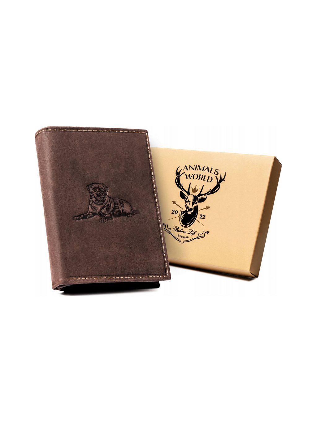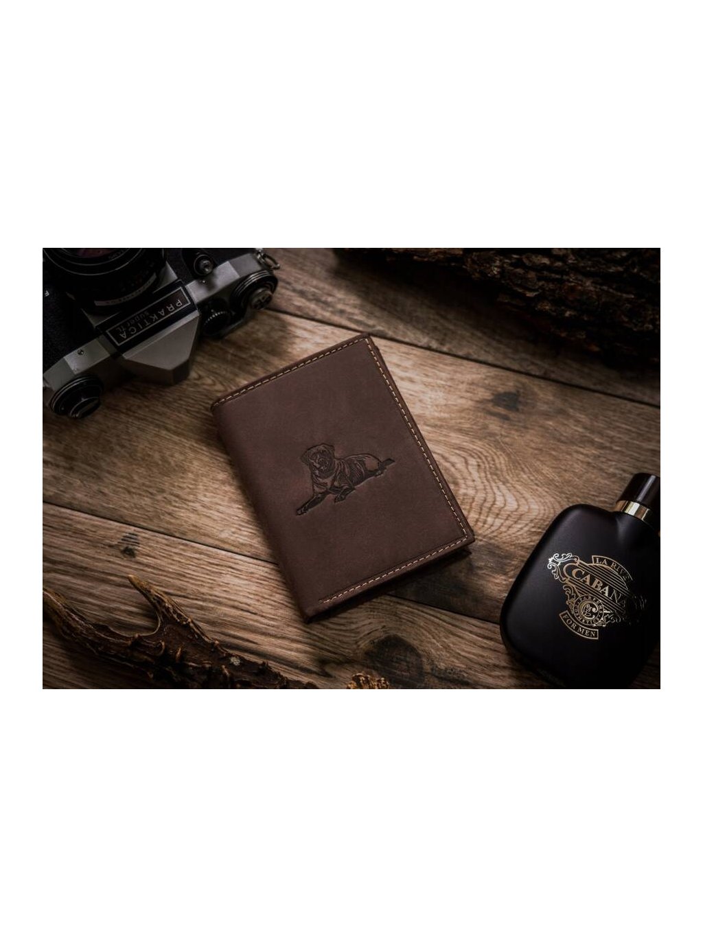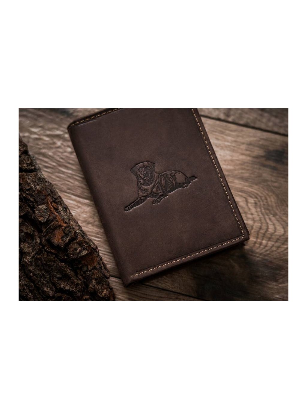 Always Wild Tmavohnedá kožená peňaženka s razbou psa A152