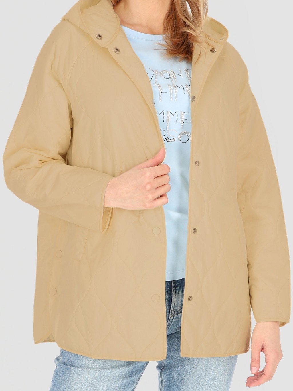 Béžová dámska prešívaná bunda s kapucňou