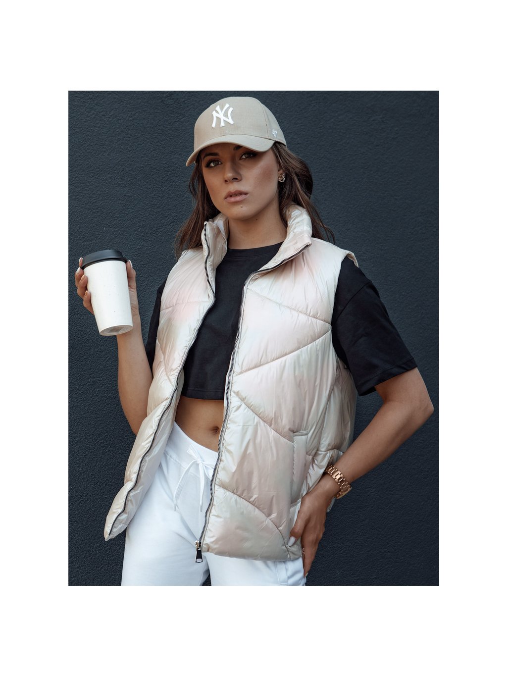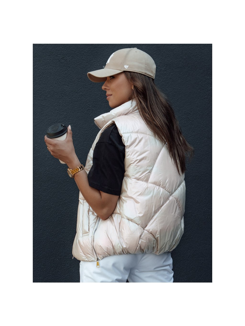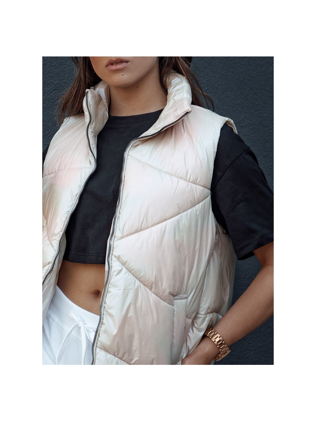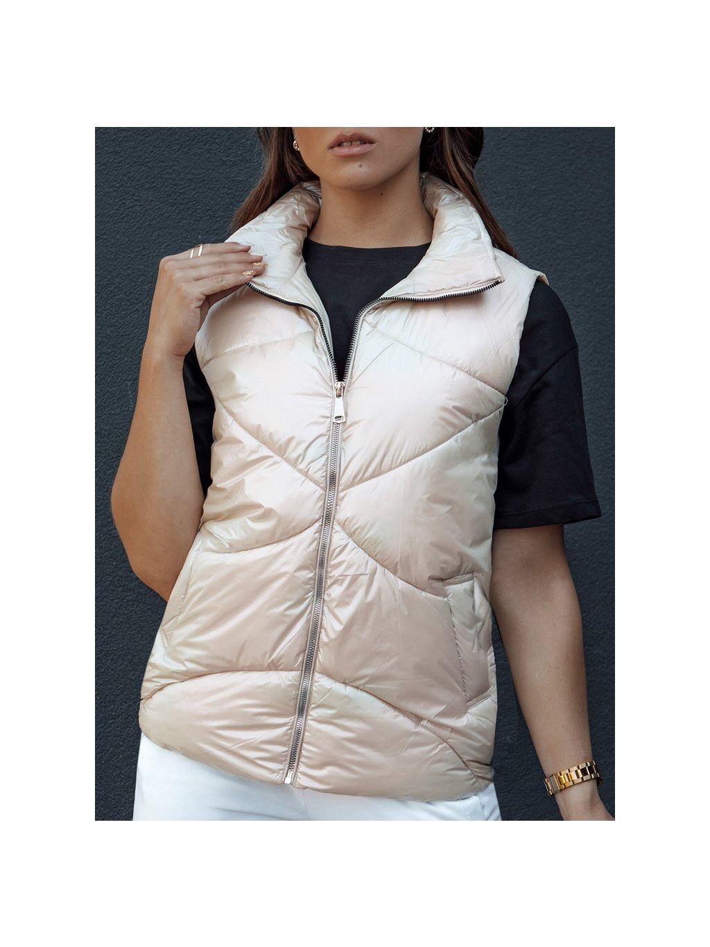Béžová lesklá vesta HOLO