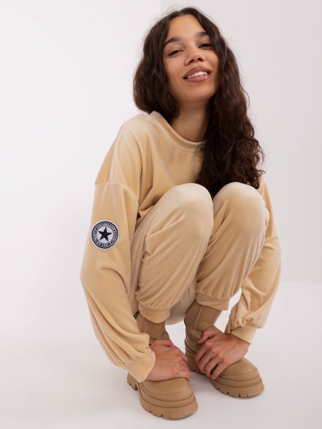 Béžová velúrová súprava