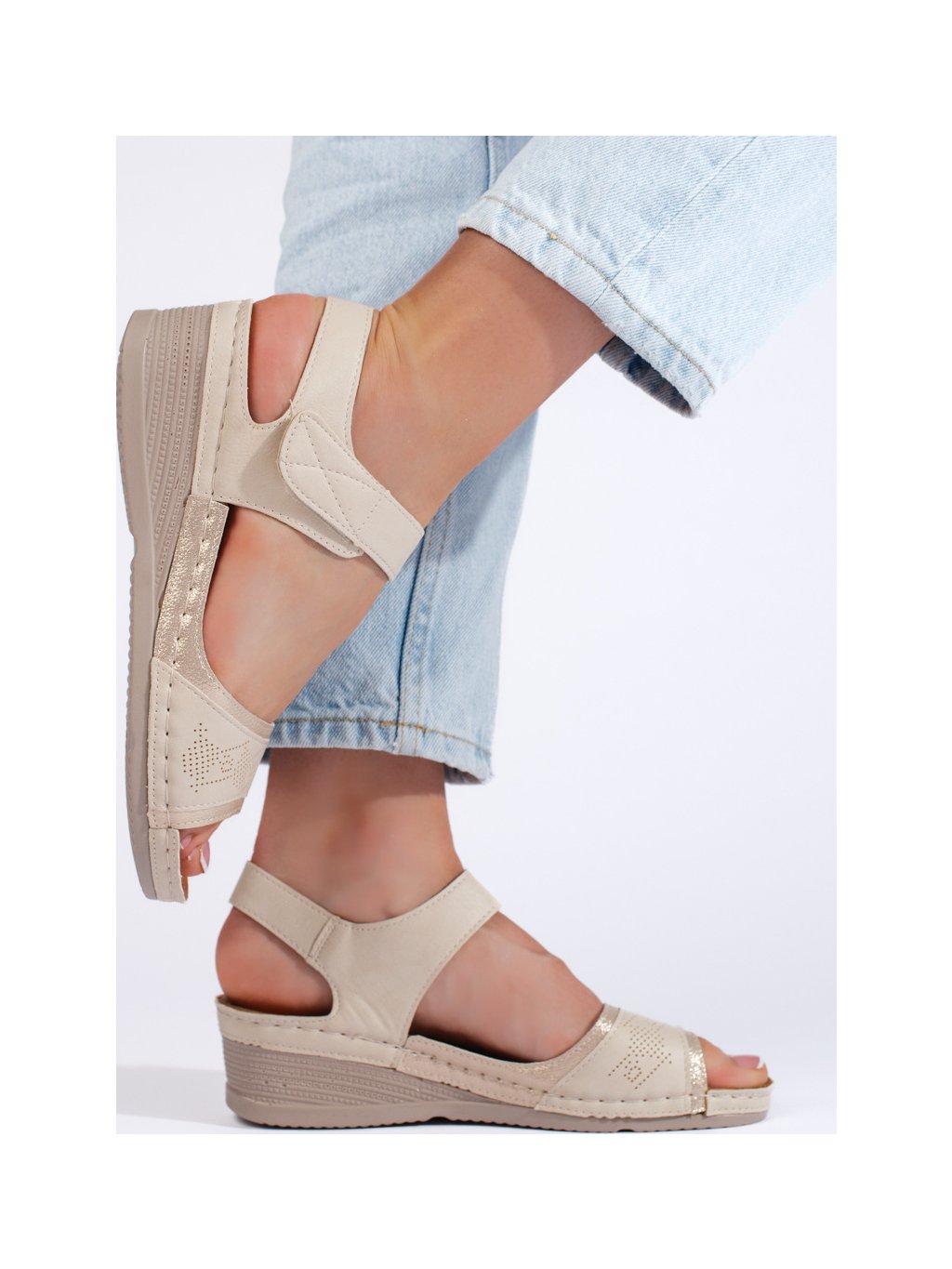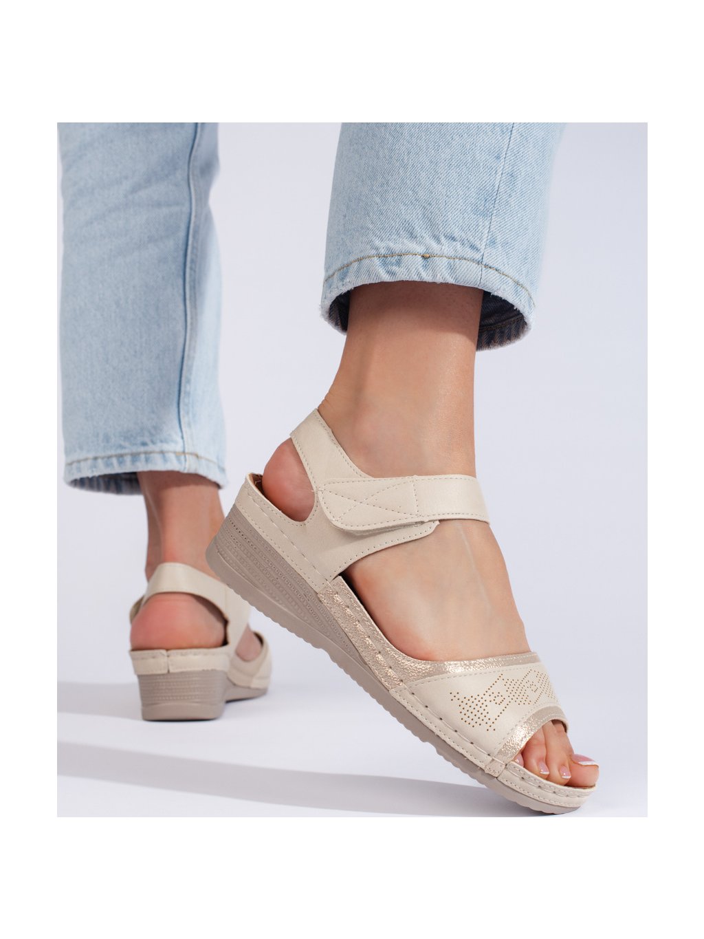 Béžové dámske sandále so suchým zipsom