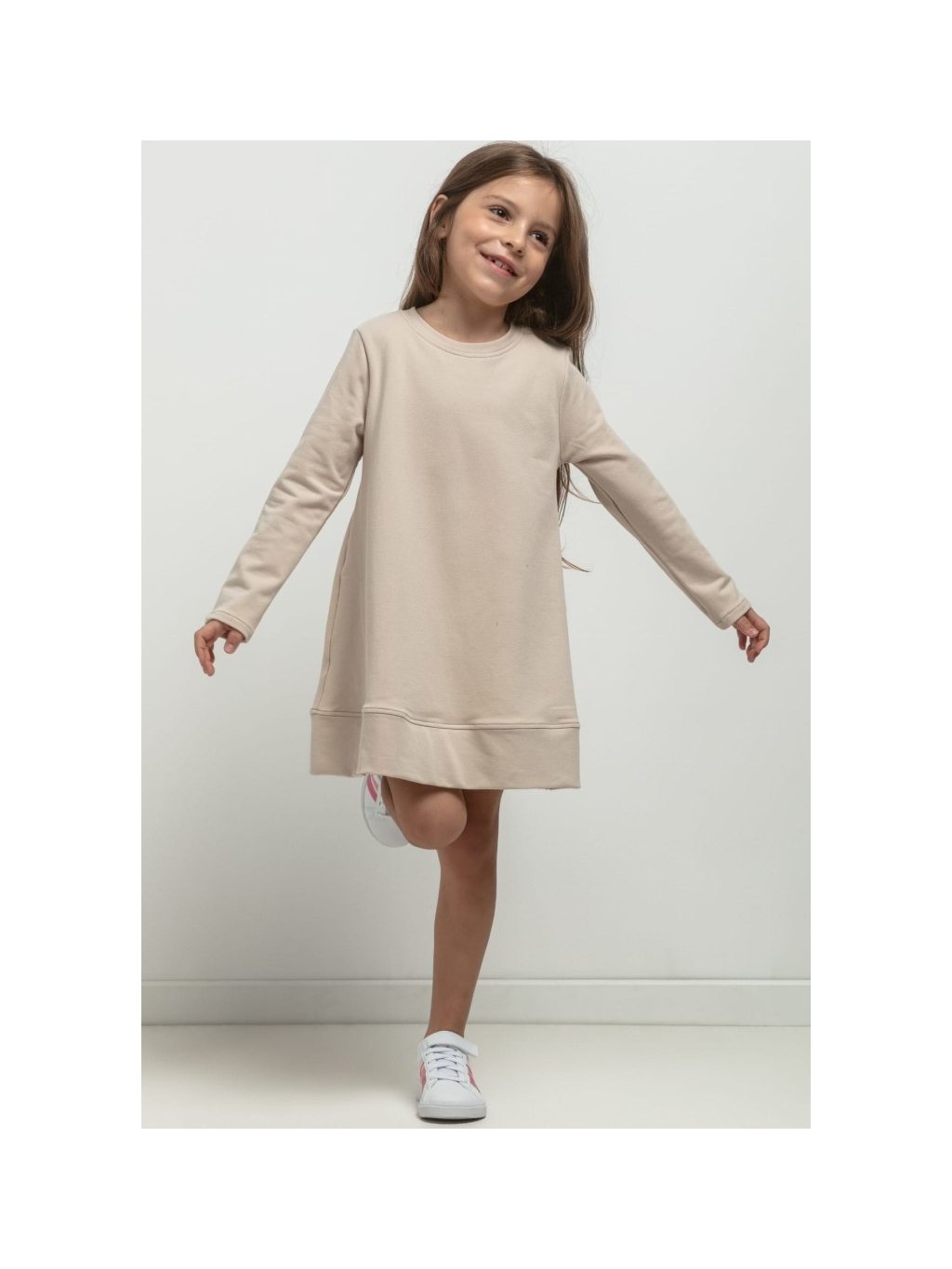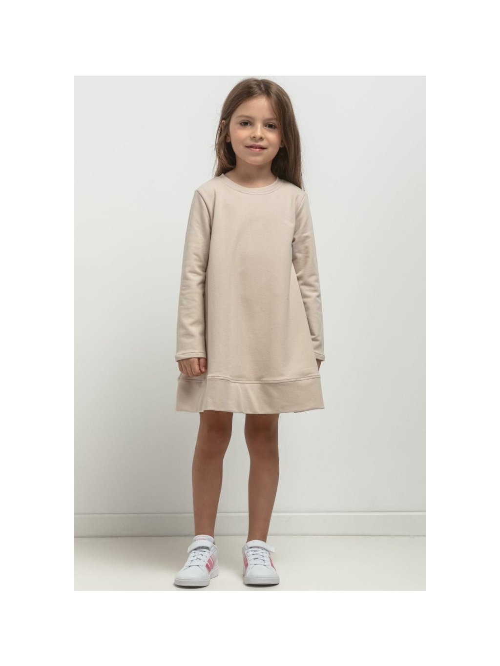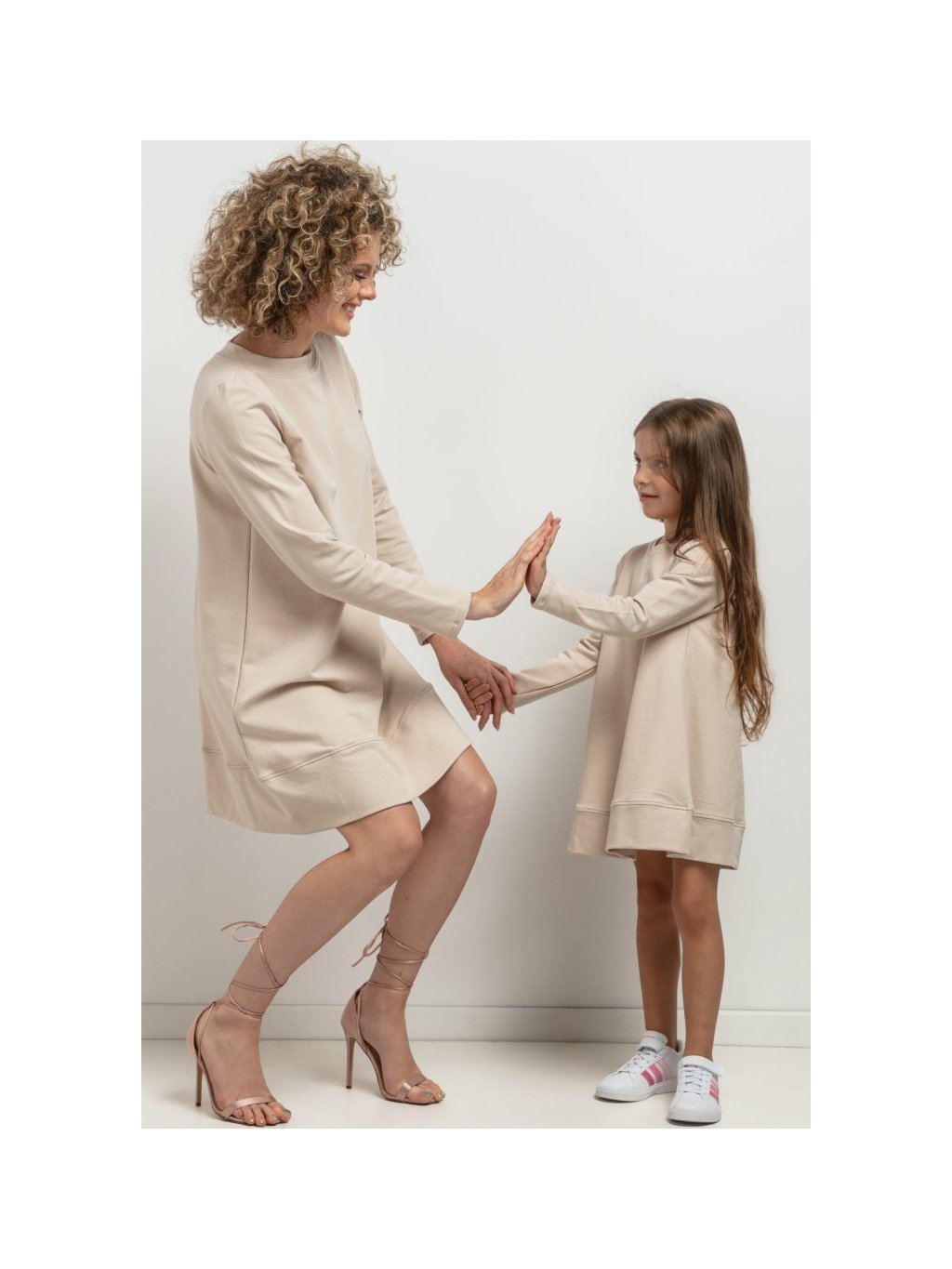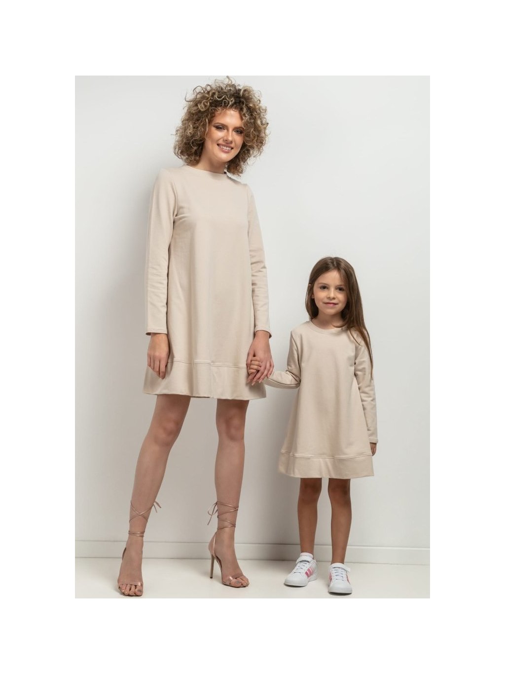 Béžové dievčenské šaty mama a dcéra s ozdobným riasením v spodnej časti