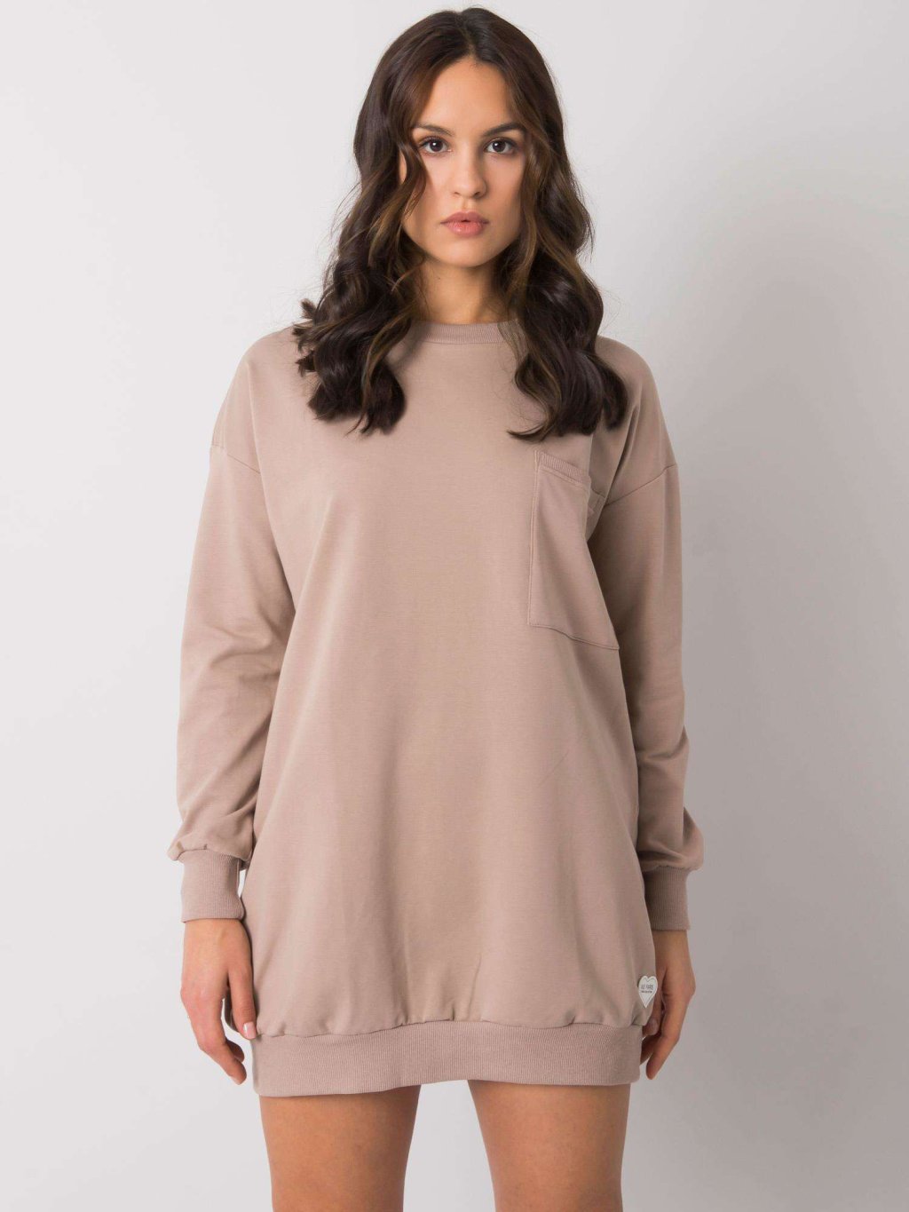 Béžové mikinové šaty Hanely s vreckom na hrudi