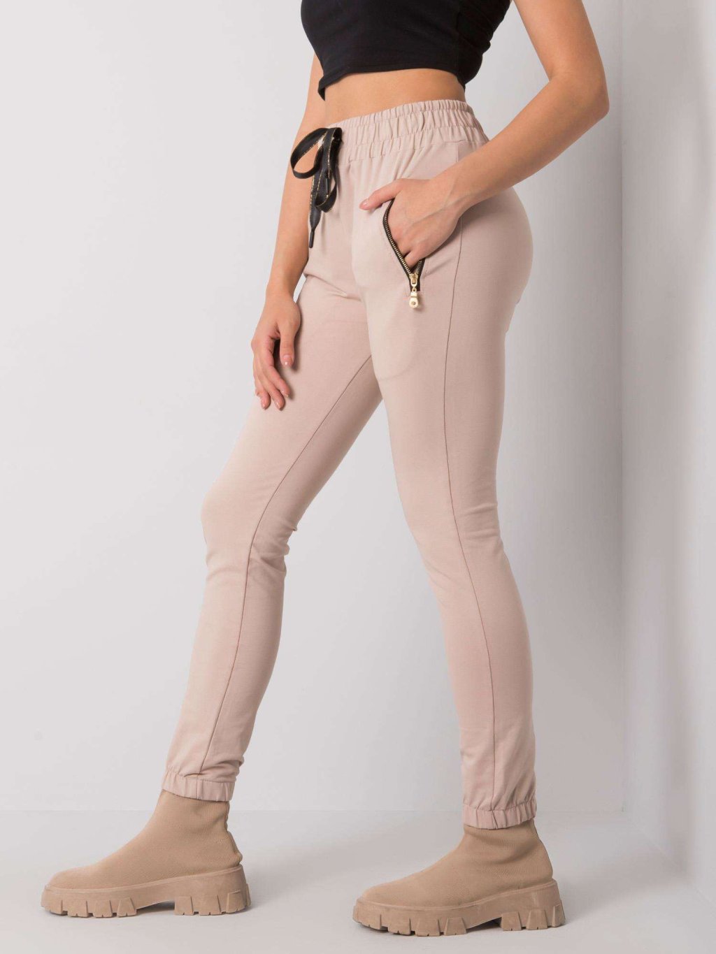 Béžové tepláky s vreckami na zips