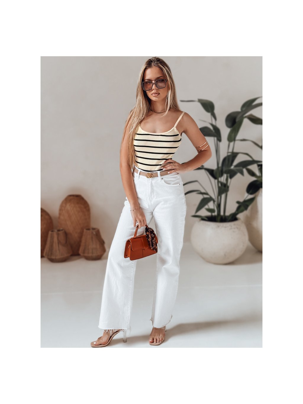 Béžovo-čierne dámske pruhované body z viskózy na ramienka STRIP BACK