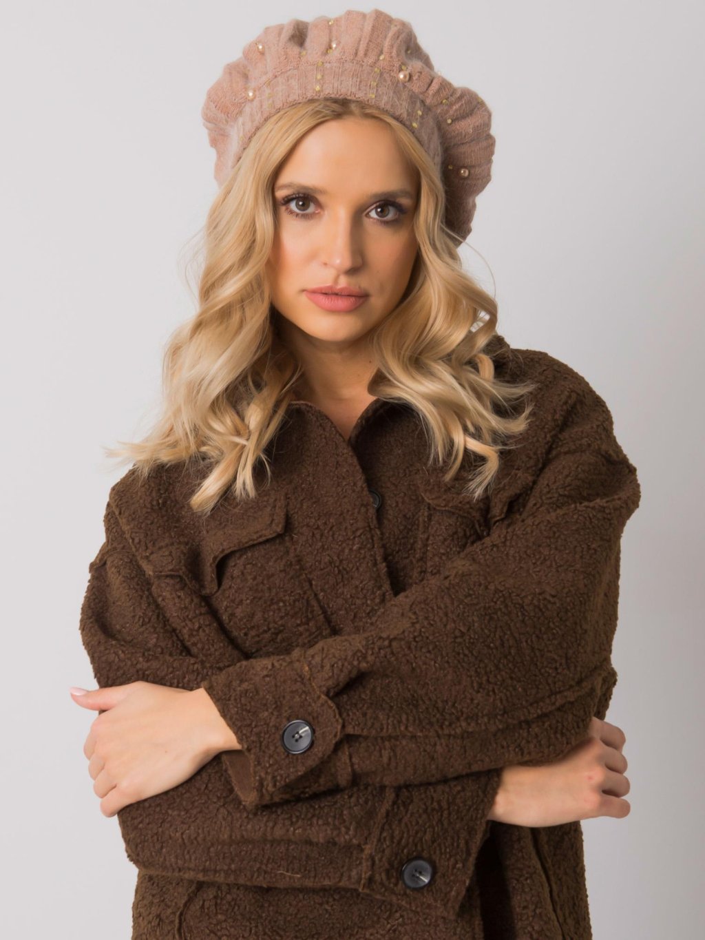 Dámsky teplý pletený baret zdobený drobnými kamienkami.