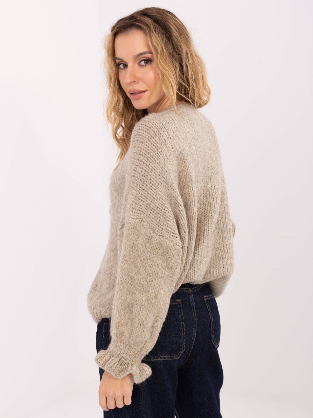 Béžový dámsky oversize sveter s 3/4 rukávmi