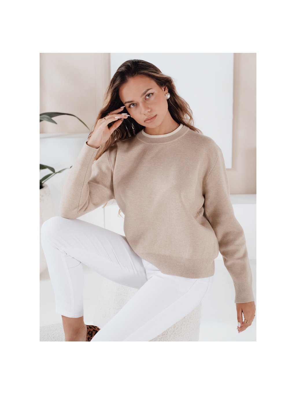 Béžový dámsky sveter s kontrastným lemom DARMILA