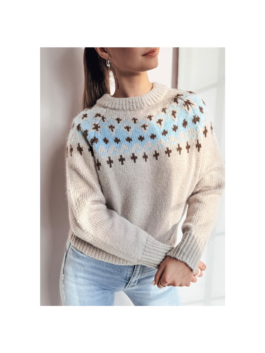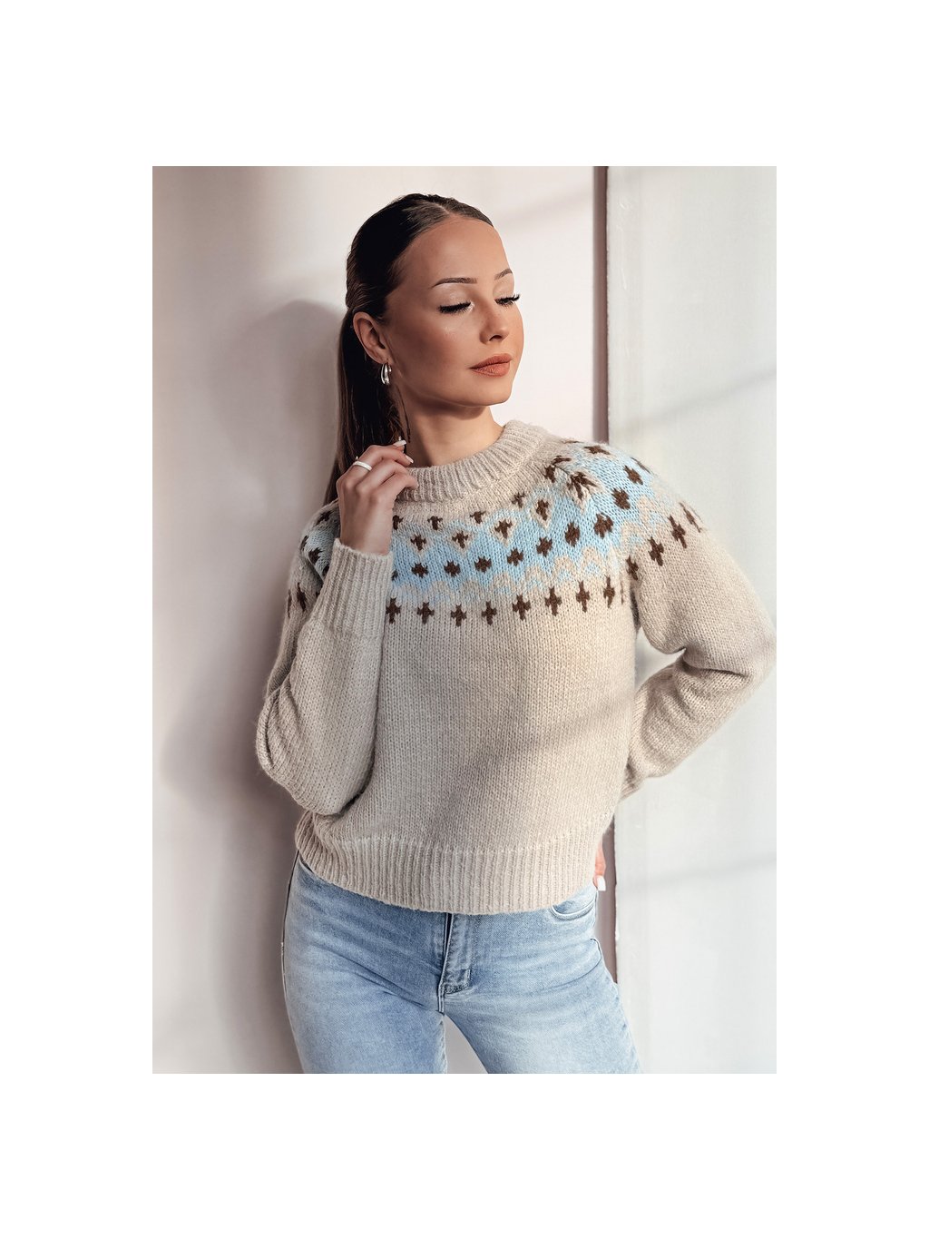 Béžový dámsky sveter so škandinávskym vzorom SKADOVA
