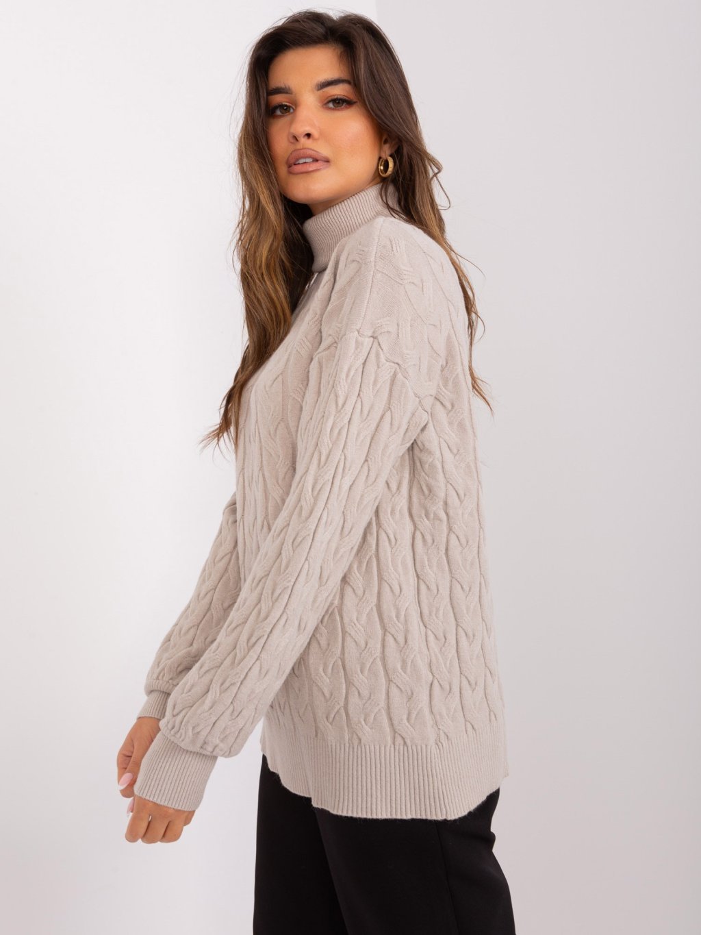 Béžový rolák s vrkôčikovým vzorom
