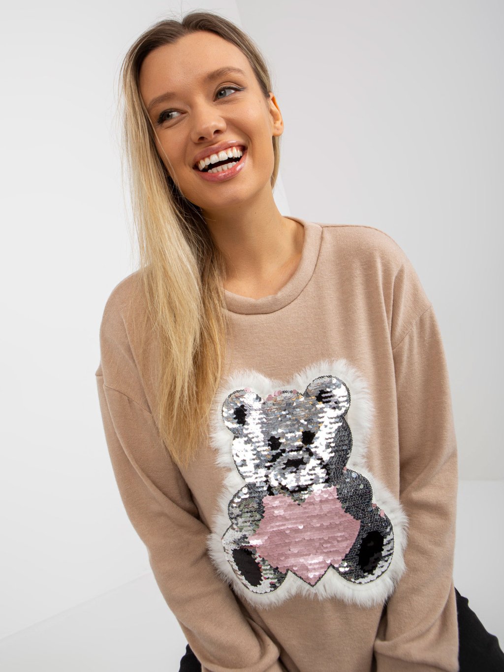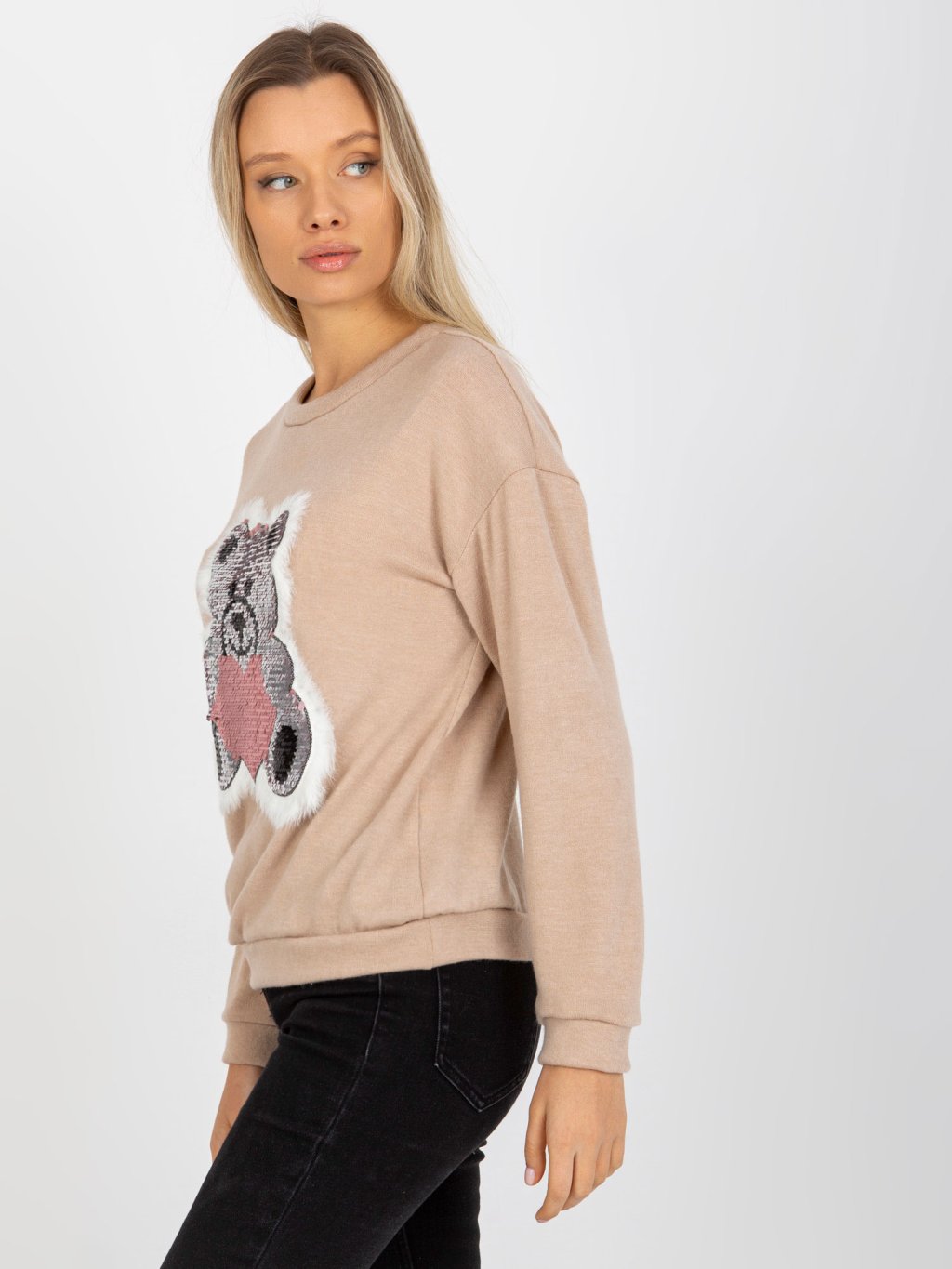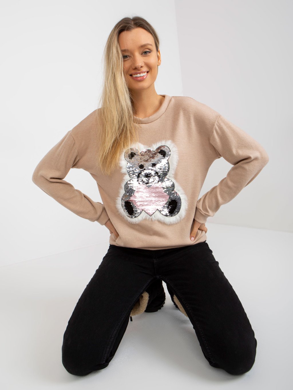 Béžový sveter s trblietavou aplikáciou medvedíka