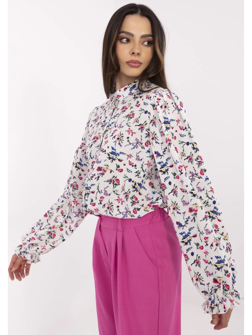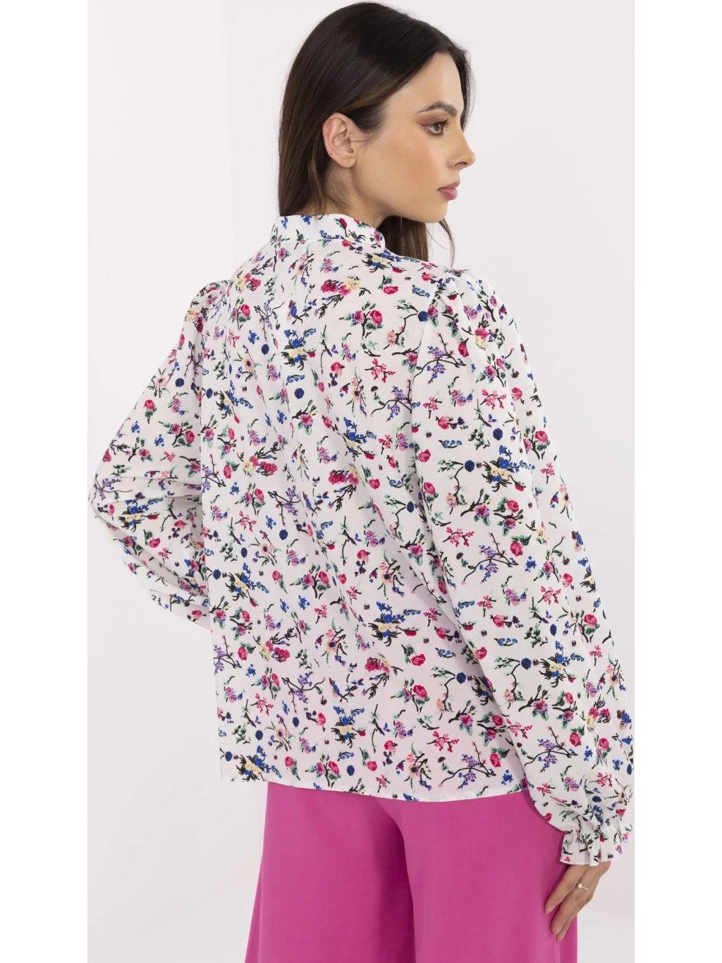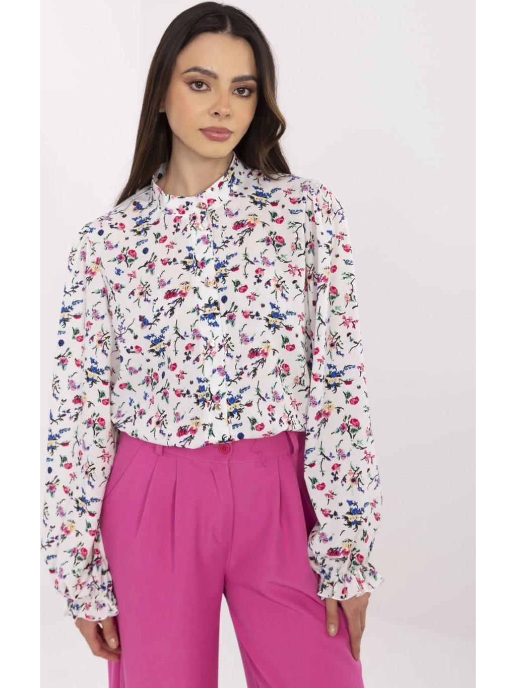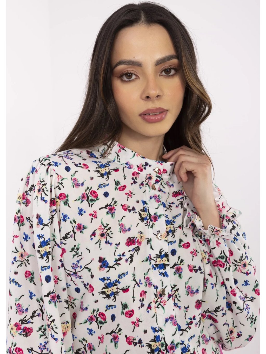 Biela dámska kvetinová košeľa s naberanými rukávmi
