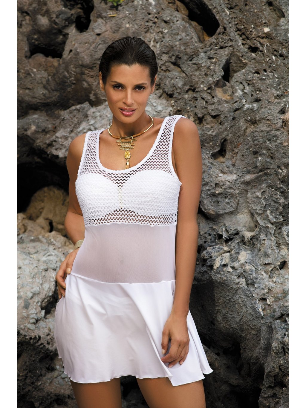 Biela plážová tunika na plavky s háčkovaným topom Ines Bianco