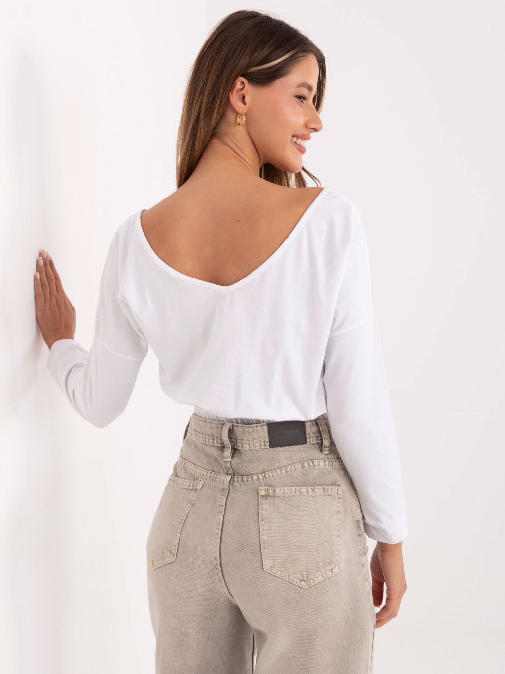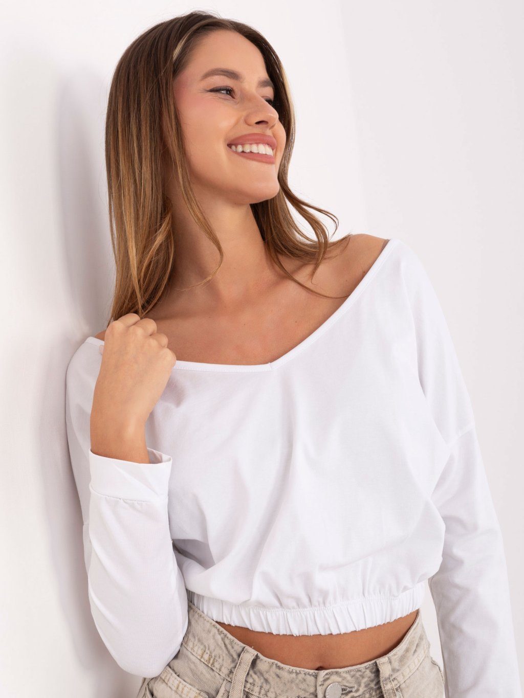 Biele dámske krátke tričko s dlhými rukávmi