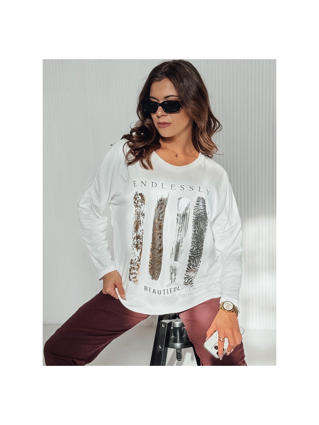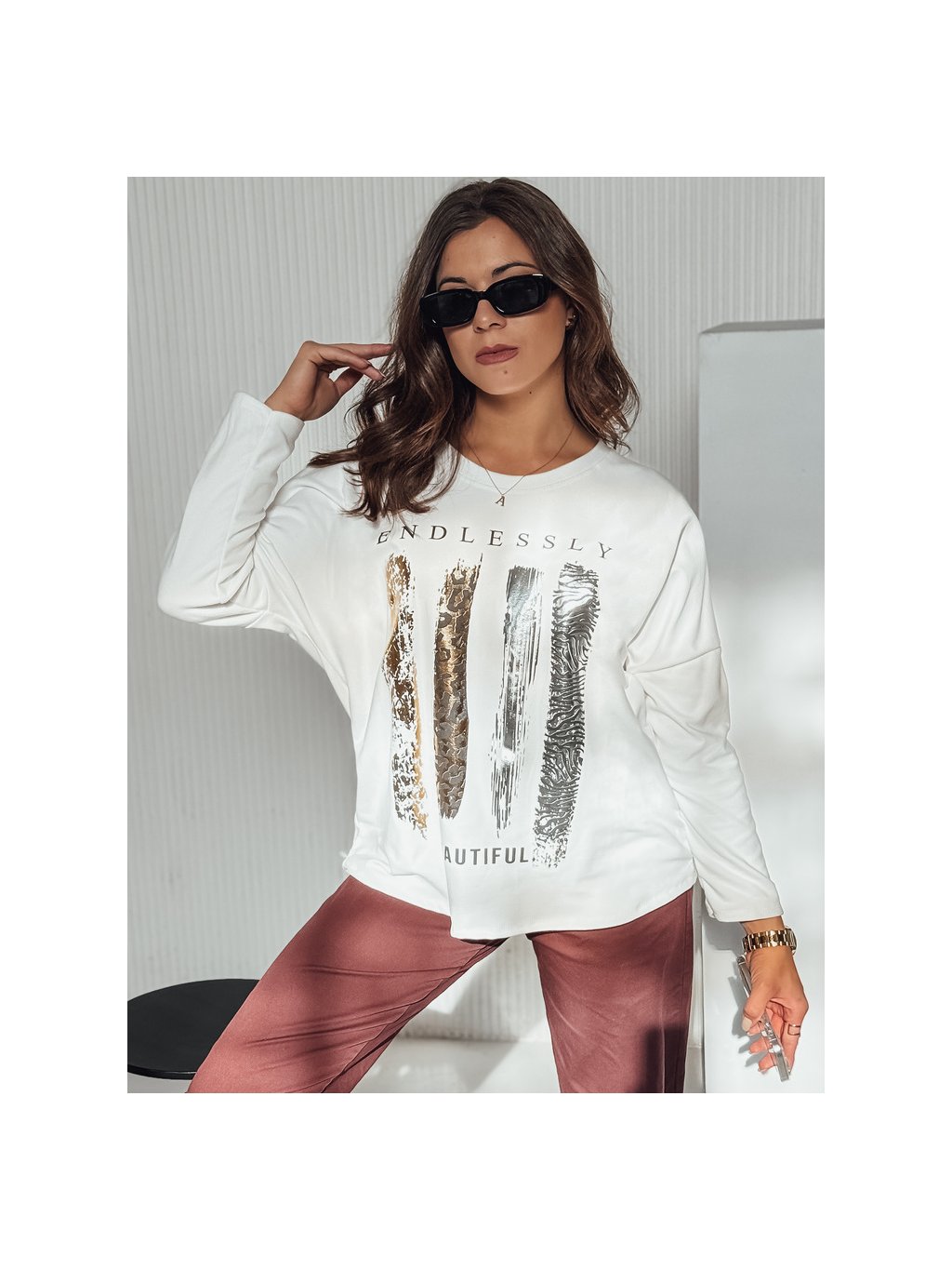 Biele dámske oversize tričko s dlhým rukávom MODEZINE