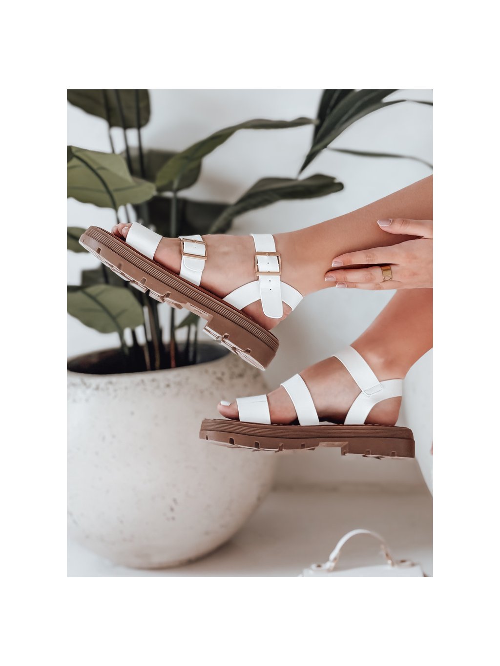 Biele dámske sandále s prackami SOLARIA