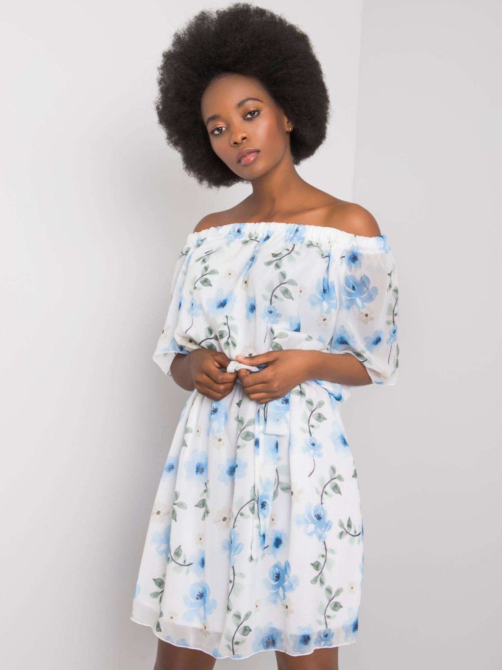 Biele dámske šaty s modrými kvetmi