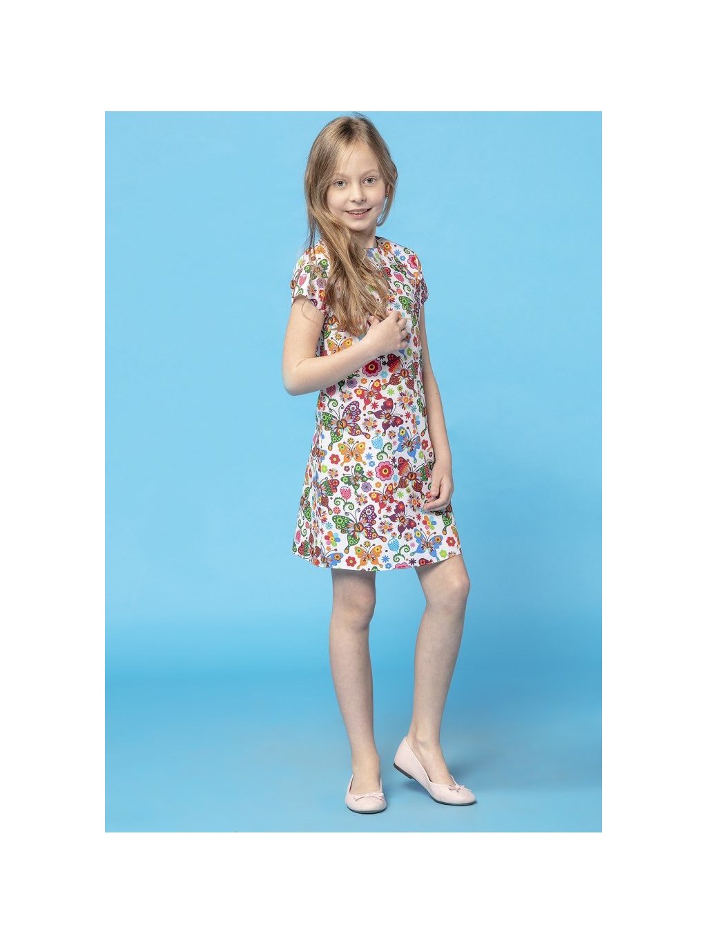 Biele dievčenské jednoduché šaty mama a dcéra s farebným vzorom