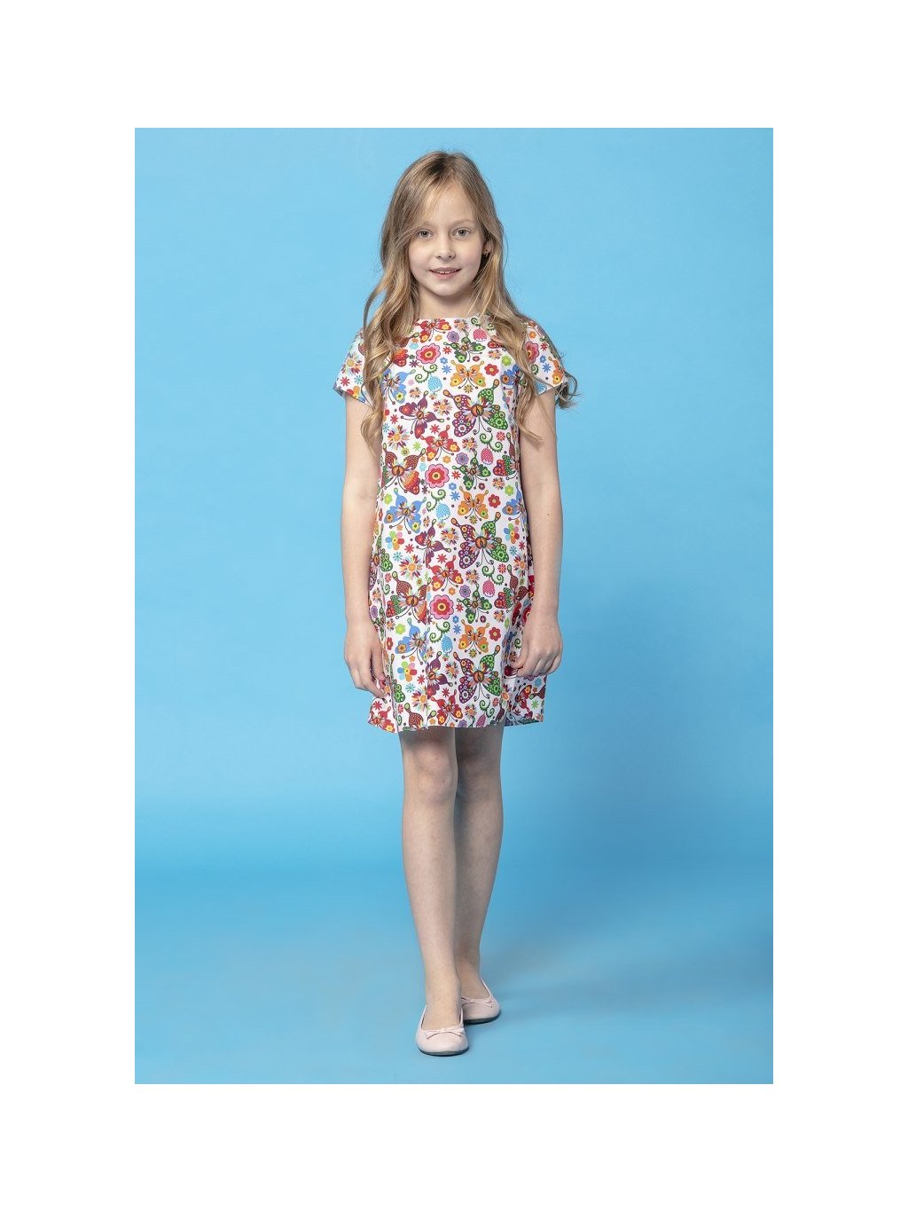 Biele dievčenské vzorované šaty mama a dcéra s riasením na chrbte