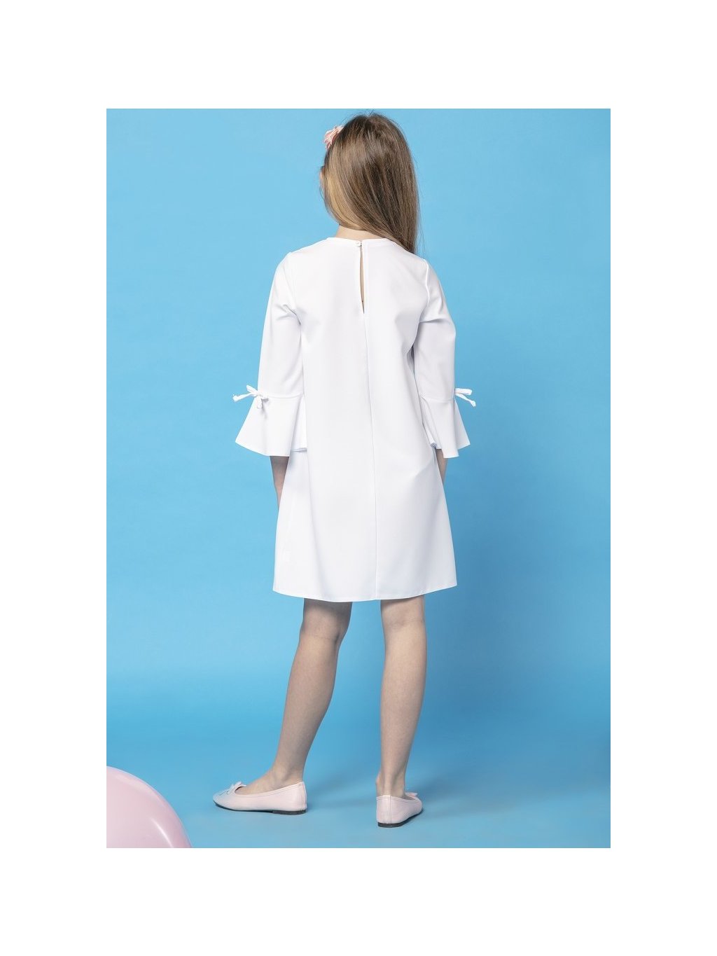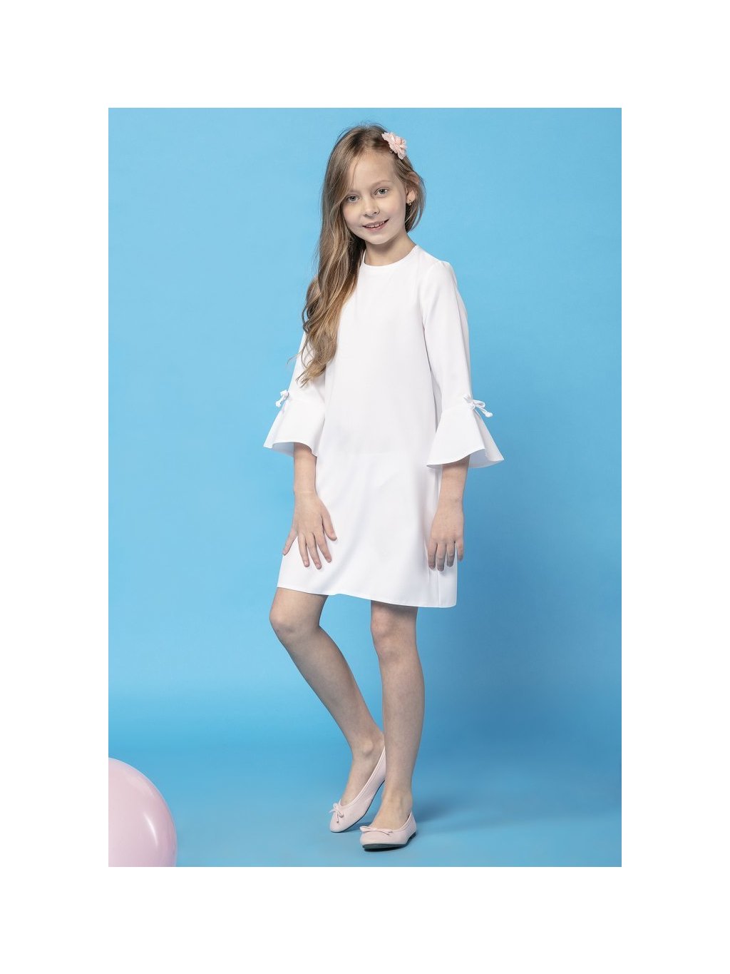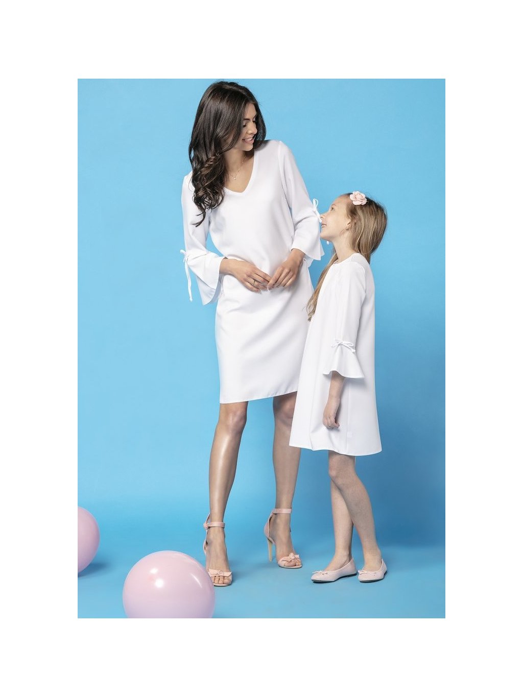 Biele jednoduché dievčenské šaty mama a dcéra s volánikmi na rukávoch