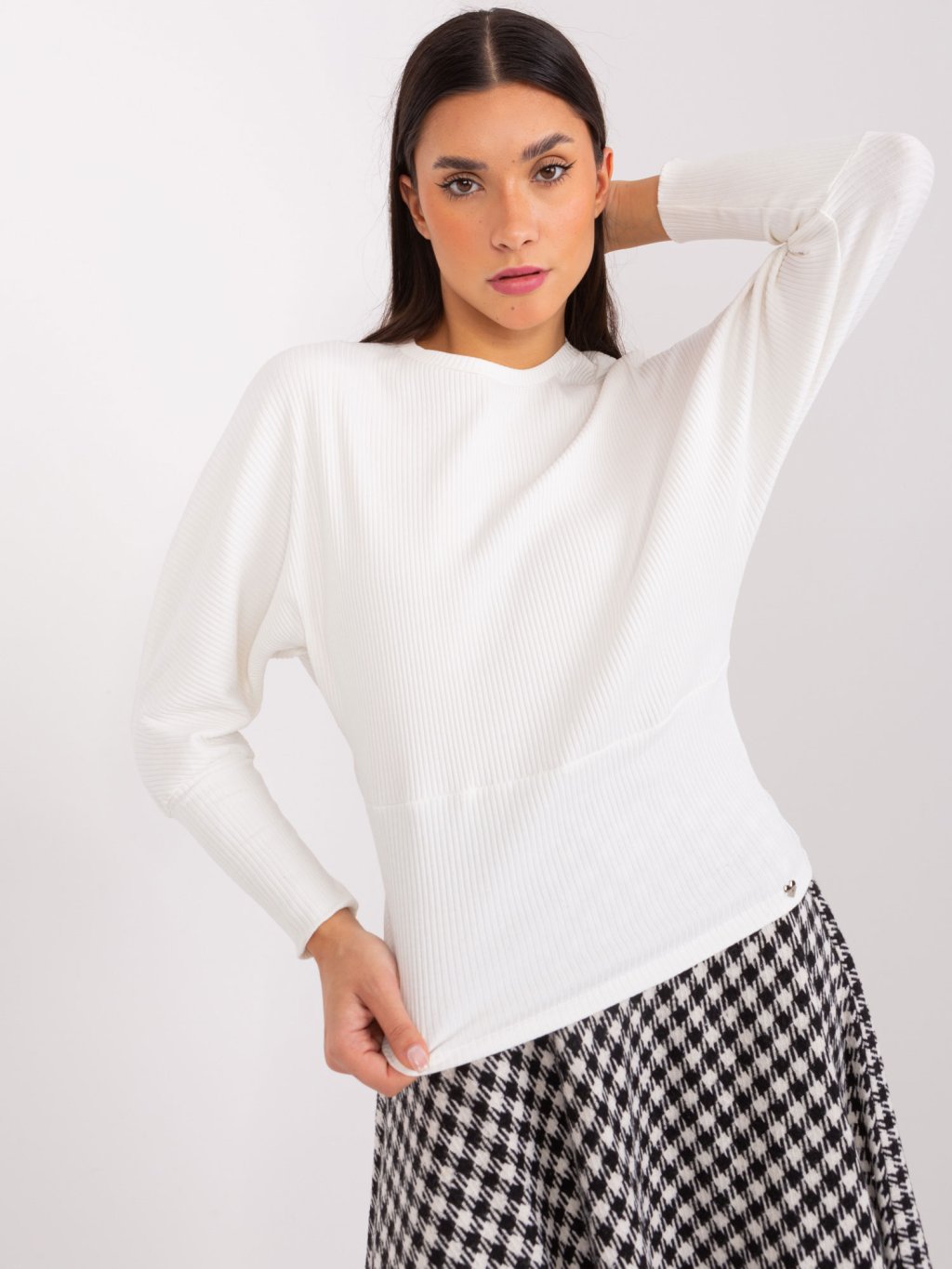 Biele rebrované tričko s netopierími rukávmi