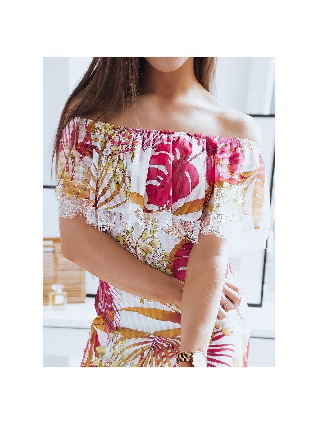 Biele šaty s farebným motívom a čipkou