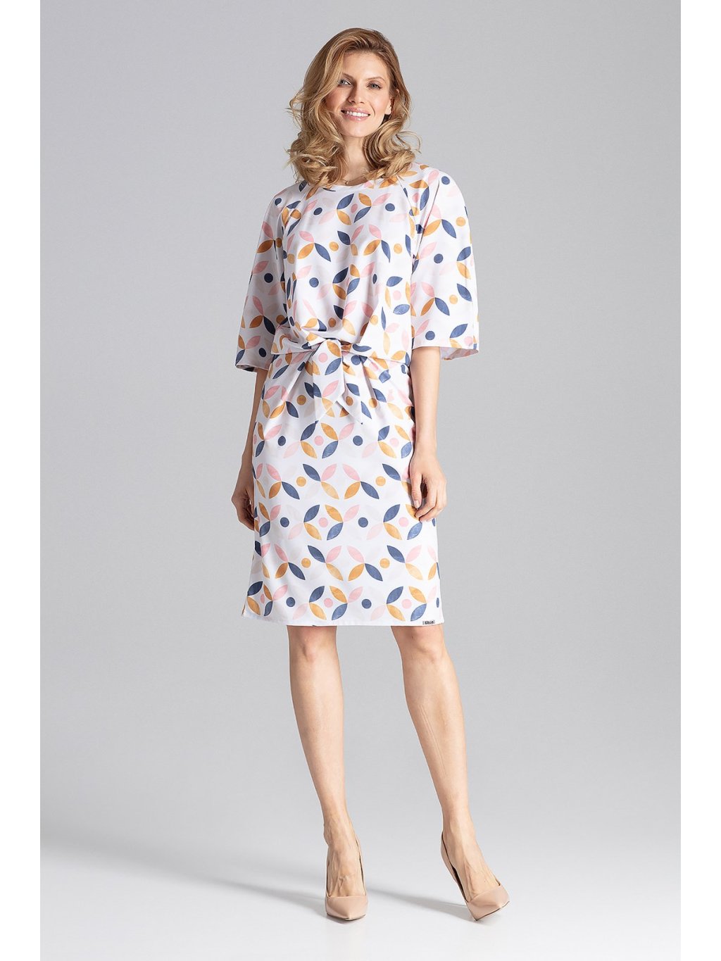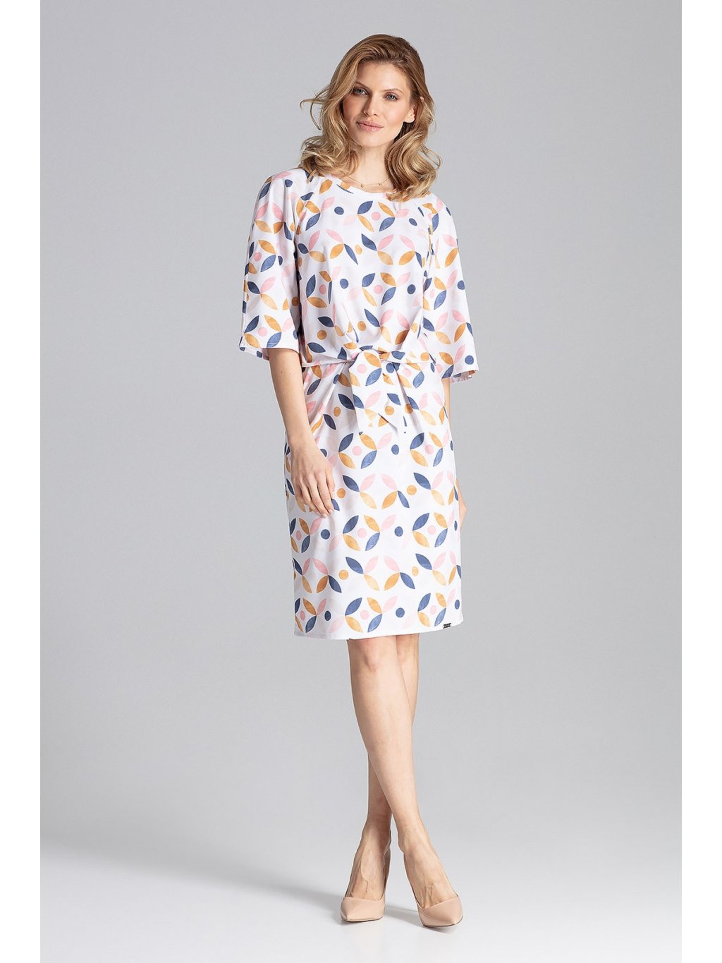 Biele šaty so vzorom a viazaním