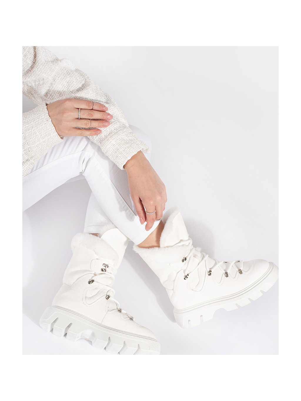 Biele šnurovacie dámske snehule s kožušinou na platforme