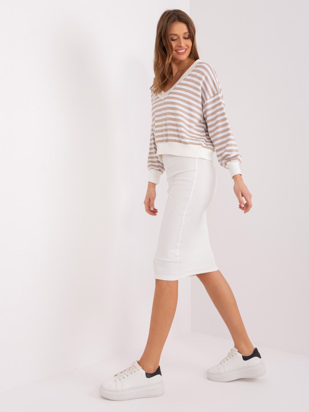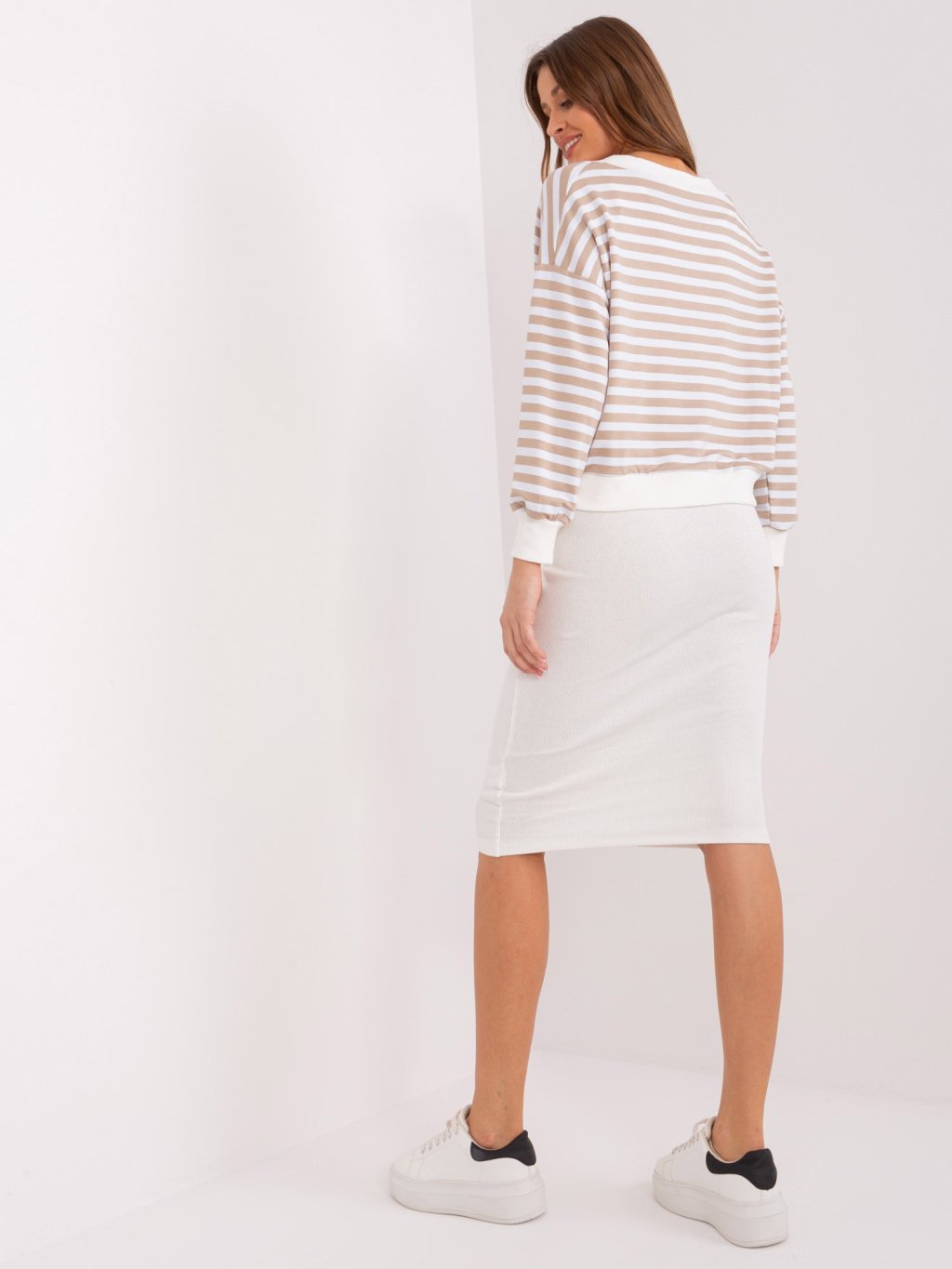 Bielo-béžový komplet šiat a pruhovanej blúzky