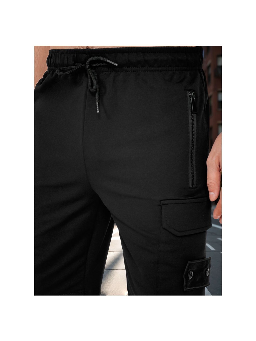 Bielo-čierna pánska krátka tepláková súprava s cargo šortkami