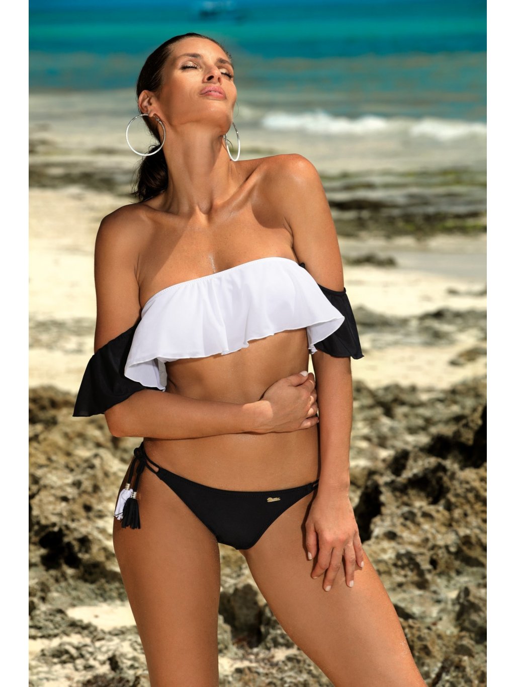 Bielo-čierne bikiny s volánikmi a strapcami Elena Bianco-Nero