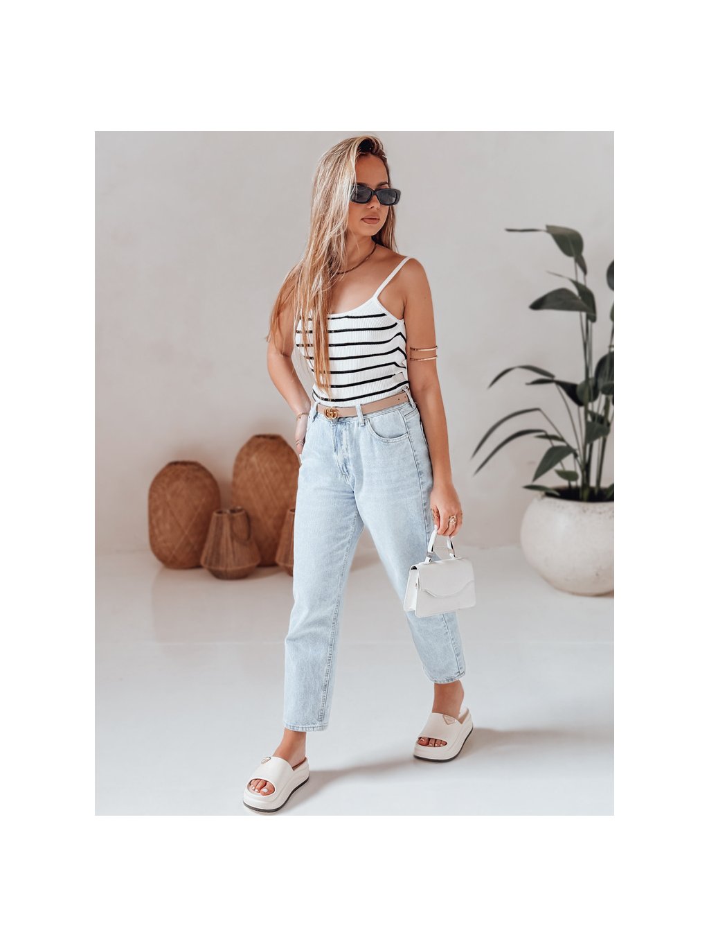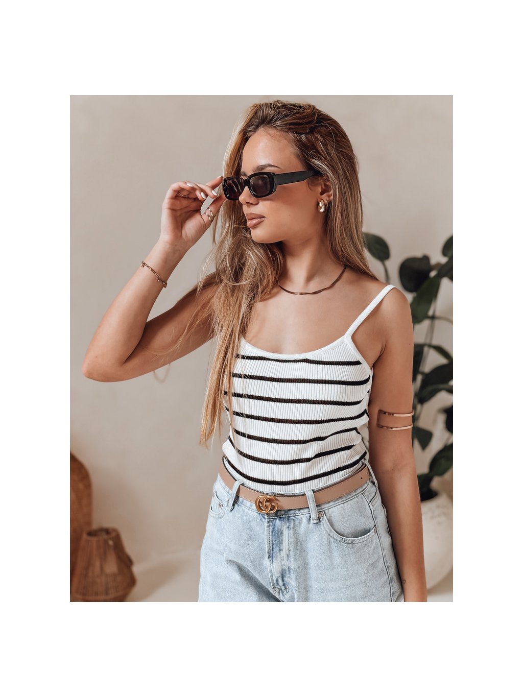 Bielo-čierne dámske pruhované body z viskózy na ramienka STRIP BACK