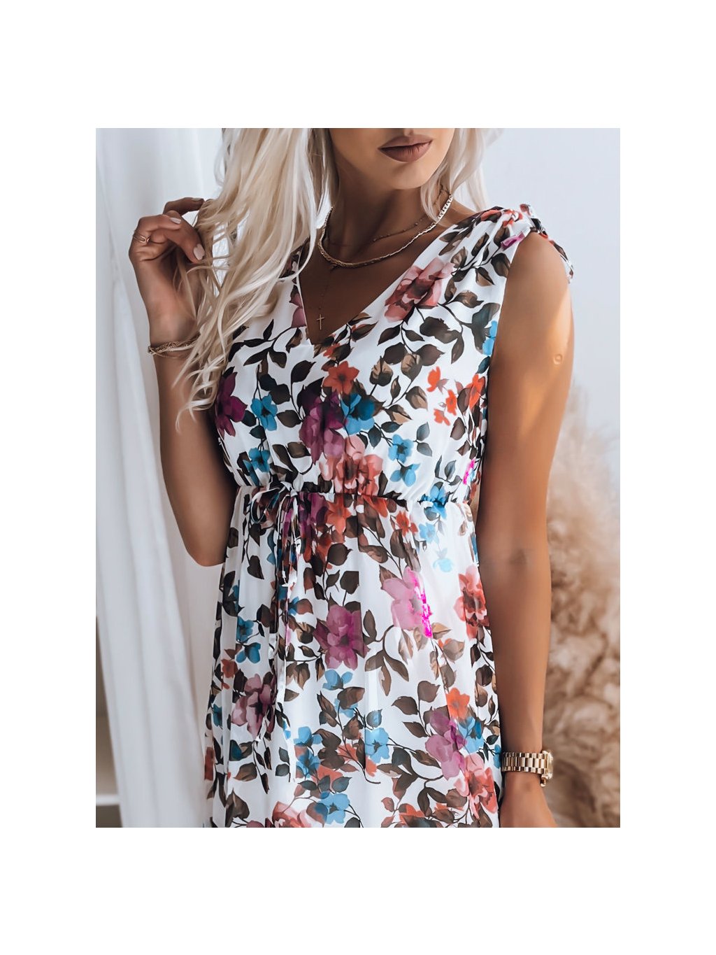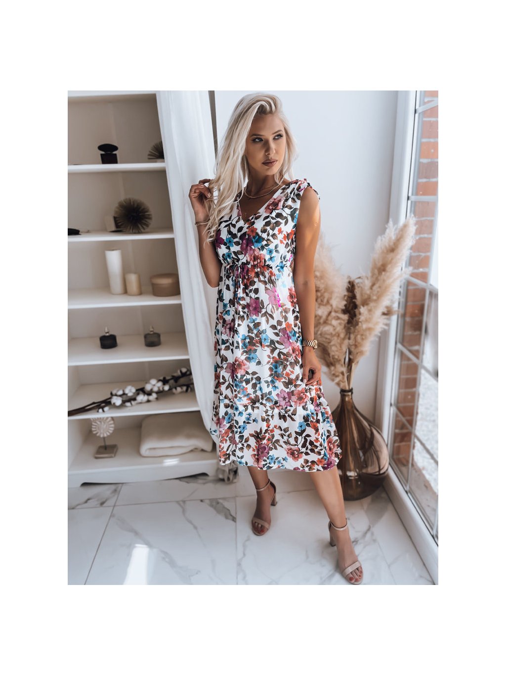 Bielo-farebné midi šaty s kvetinovou potlačou