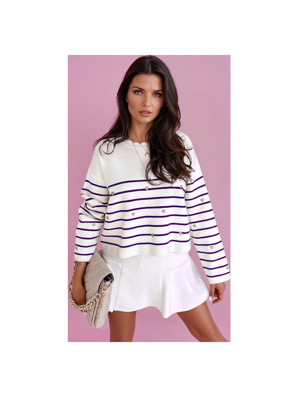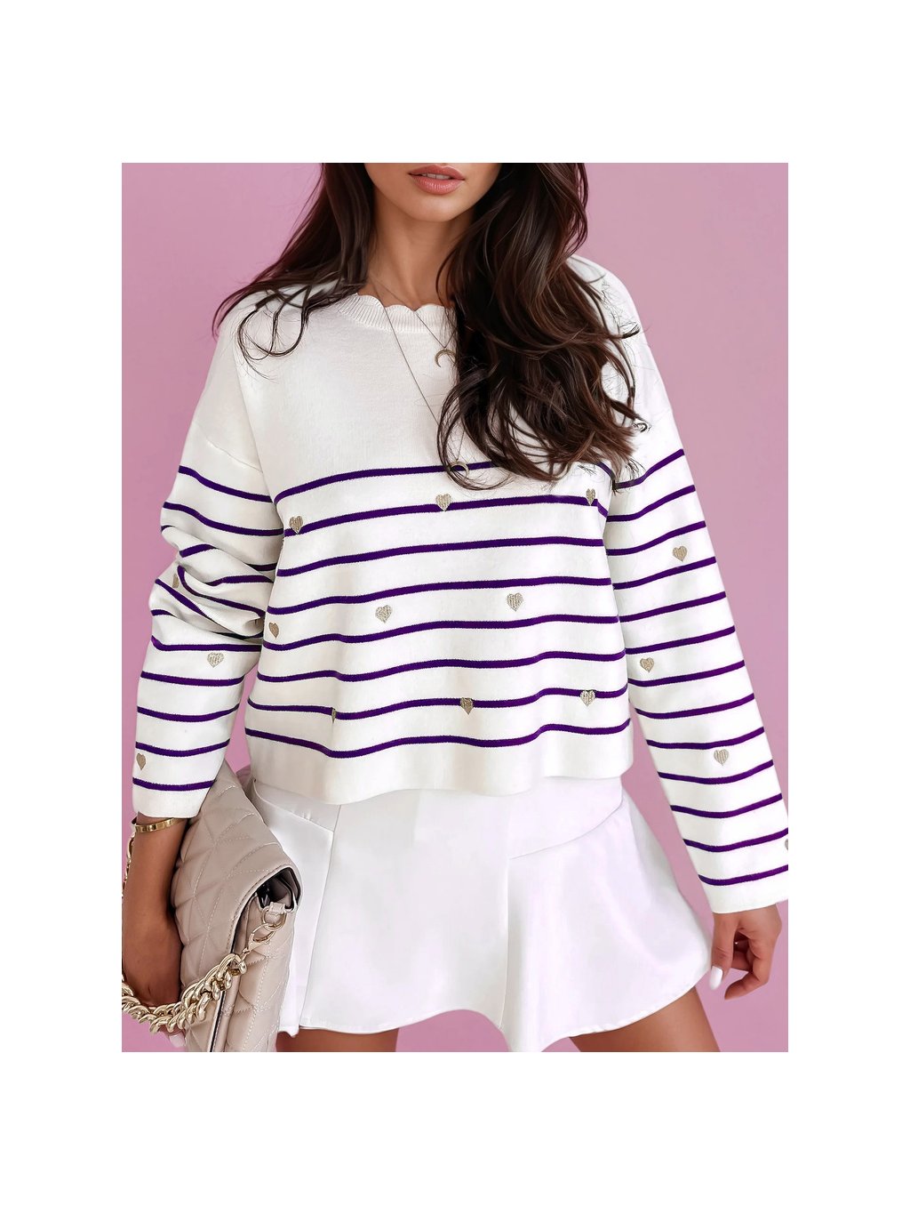 Bielo-fialový pruhovaný sveter so srdiečkami VELORIA
