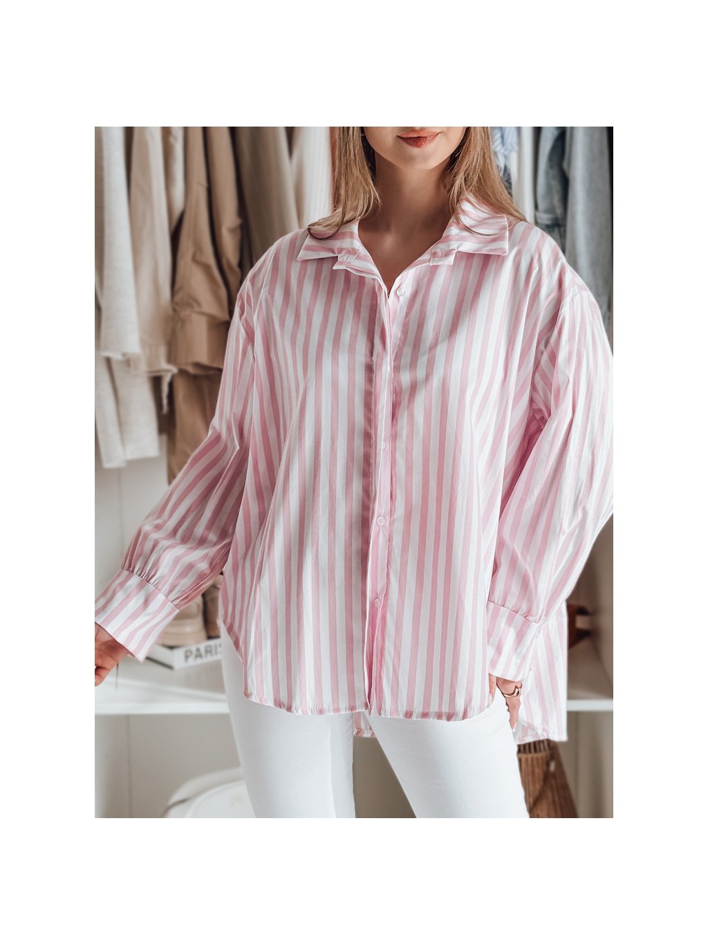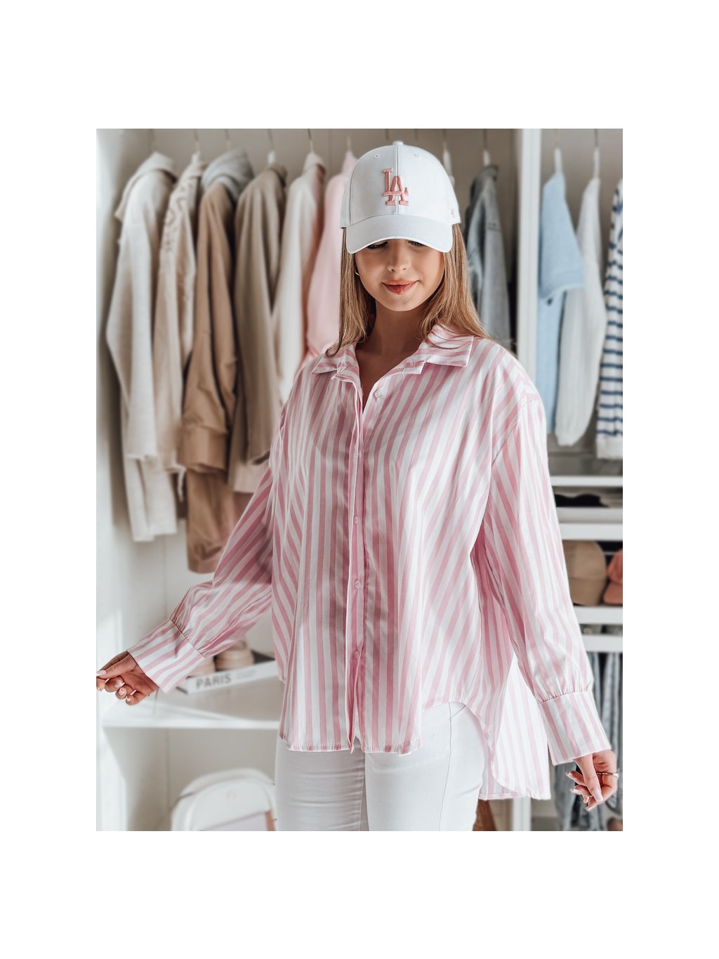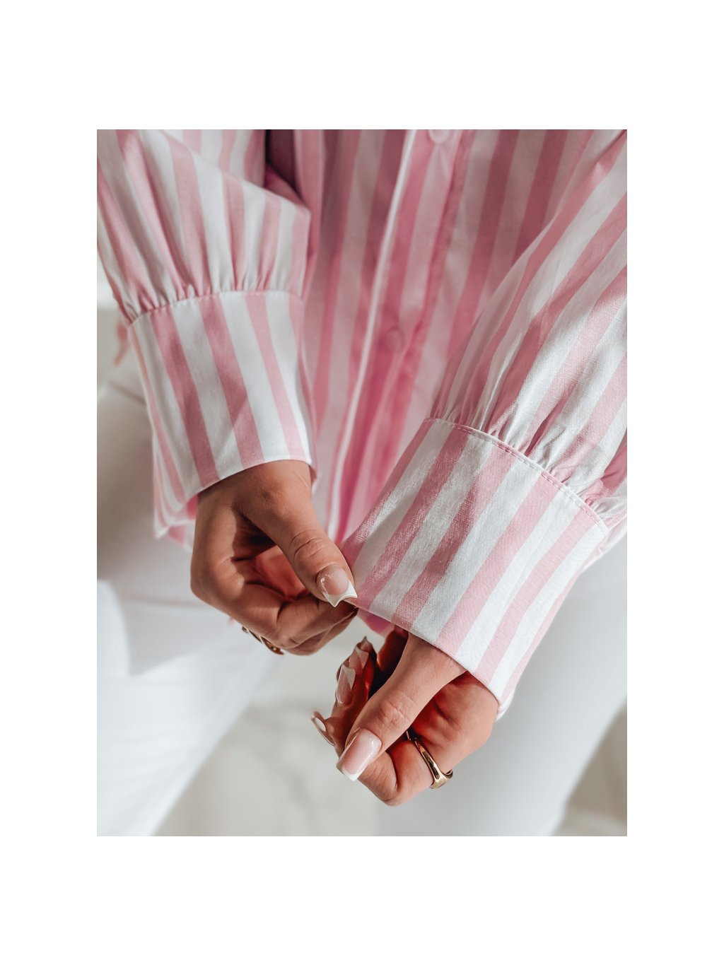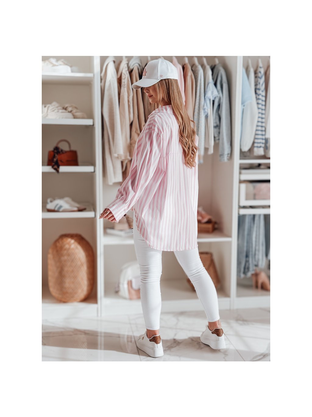 Bielo-ružová dámska oversize košeľa s predĺženou zadnou časťou SAMONE