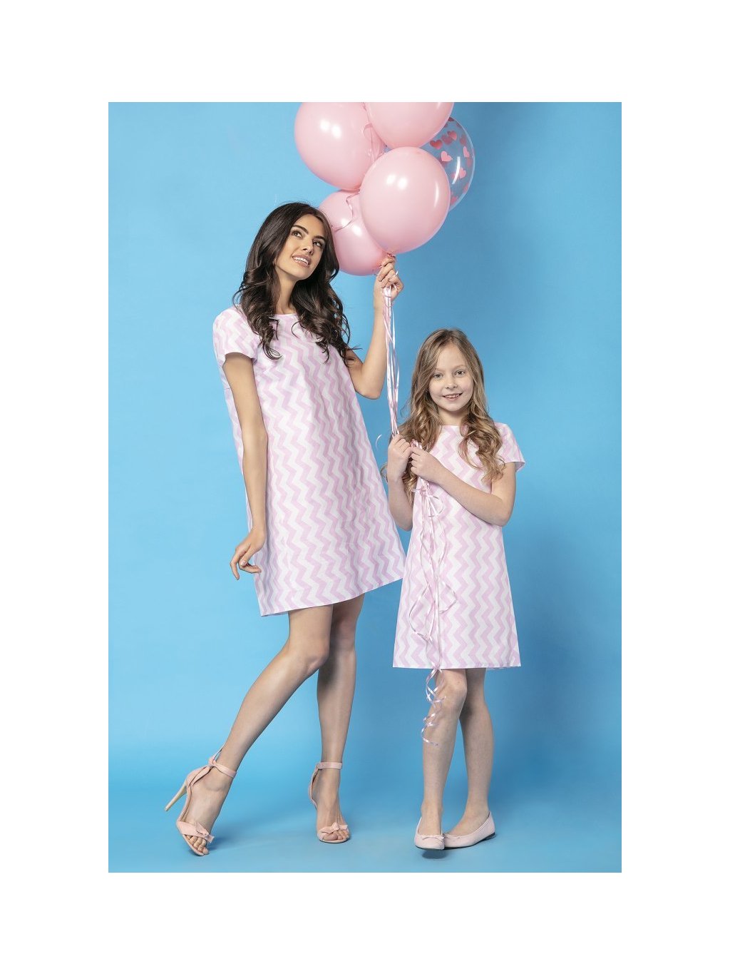 Bielo-ružové dámske šaty mama a dcéra s riasením na chrbte