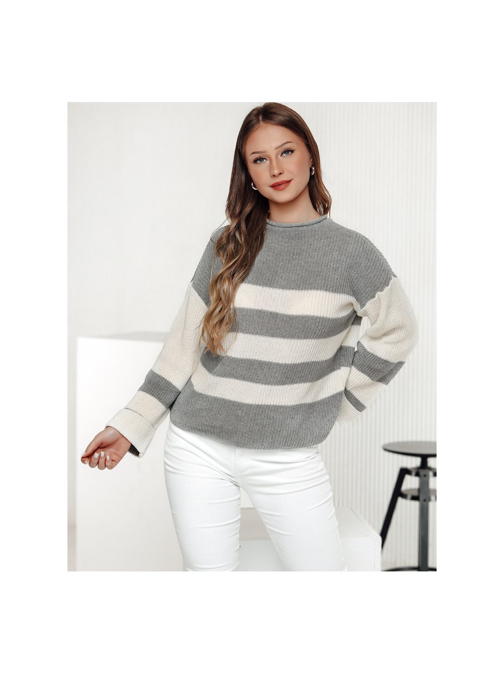 Bielo-sivý dámsky pruhovaný sveter LINEZZA