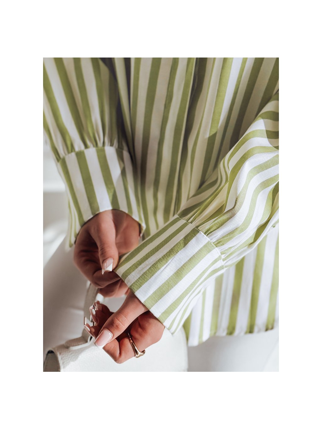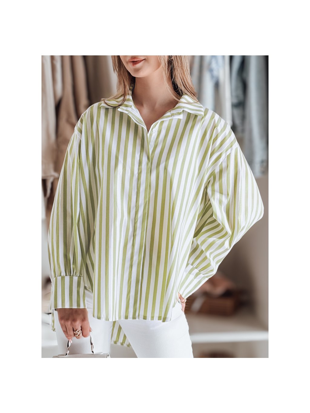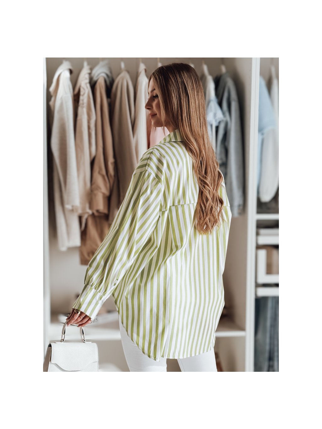 Bielo-zelená dámska oversize košeľa s predĺženou zadnou časťou SAMONE