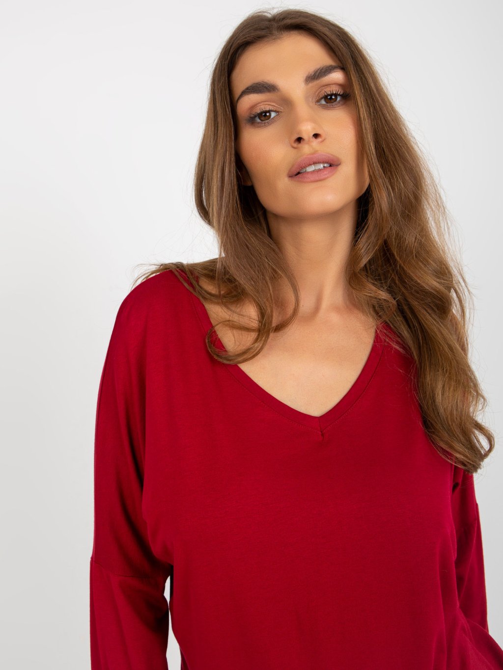 Bordó jednofarebná blúzka s 3/4 rukávom