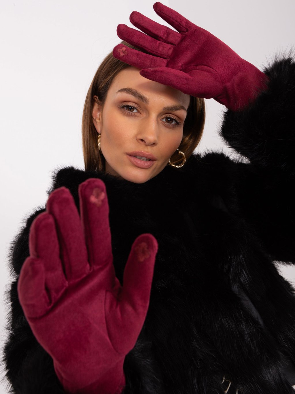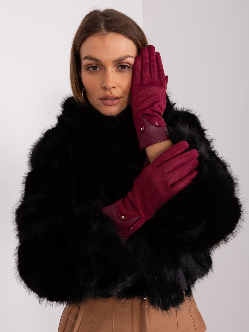 Bordó semišové rukavice