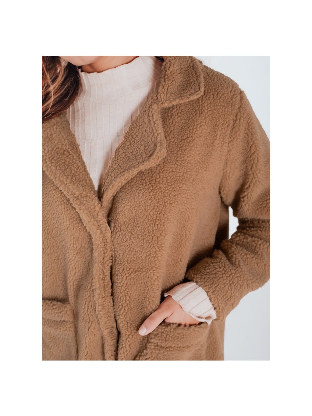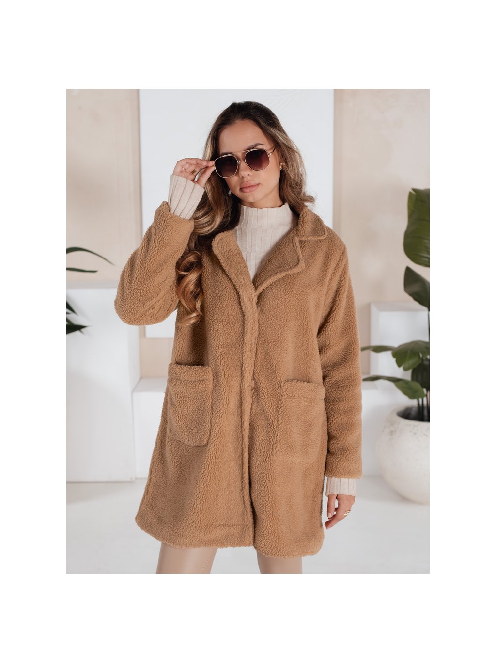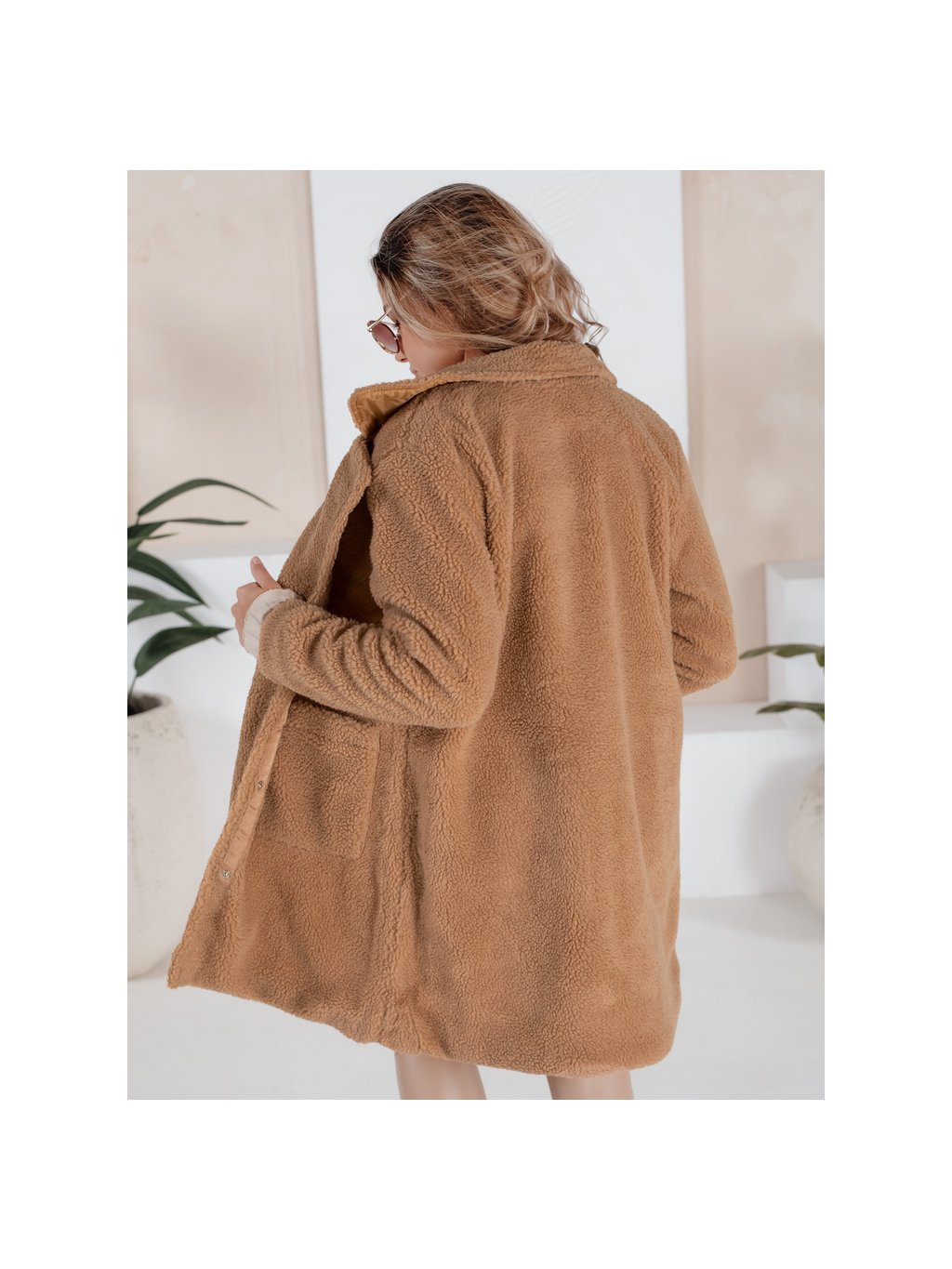 Camel dámsky oversize teddy kabát