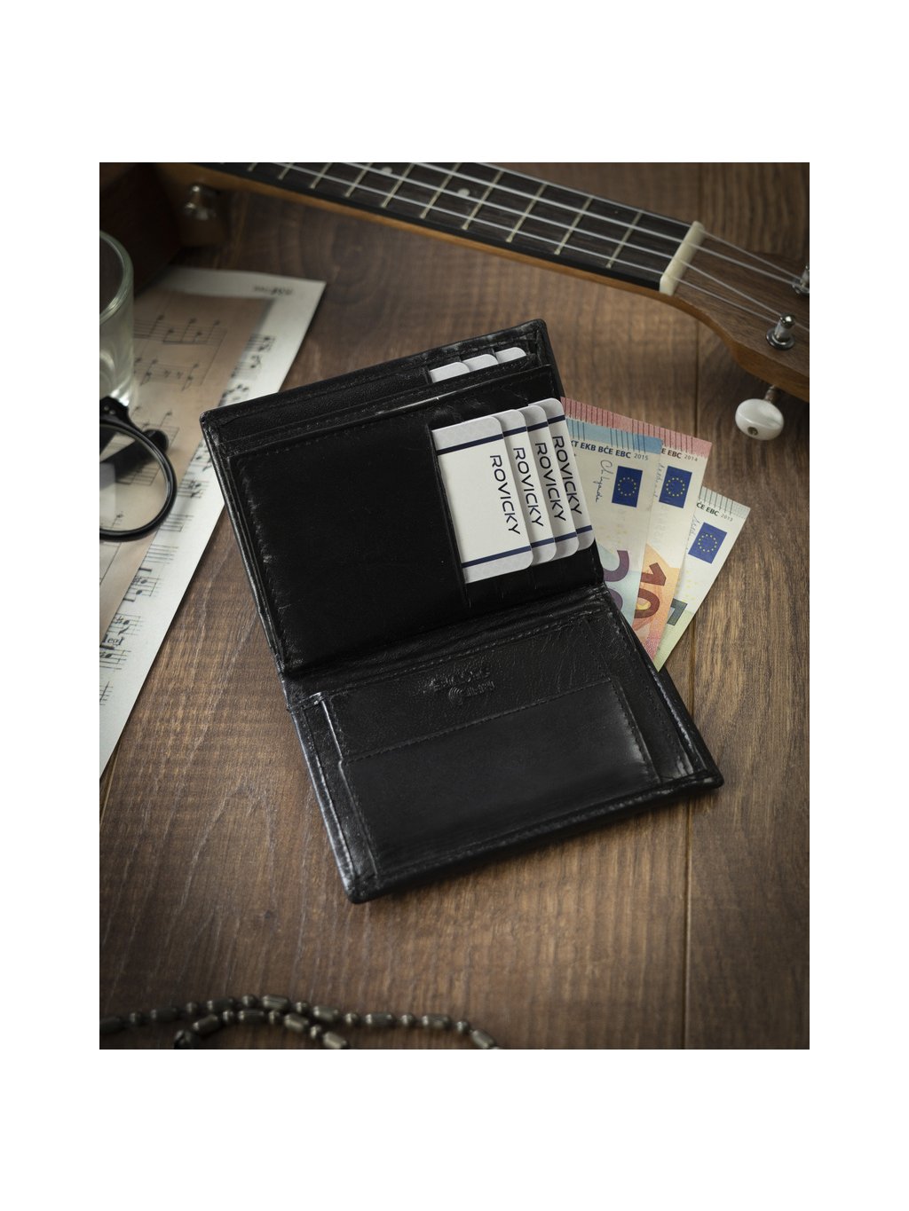 - vo vnútri má 10 miest na karty, 5 miest na väčšie doklady, vrecko na mince na patent, 2 priehradky na bankovky